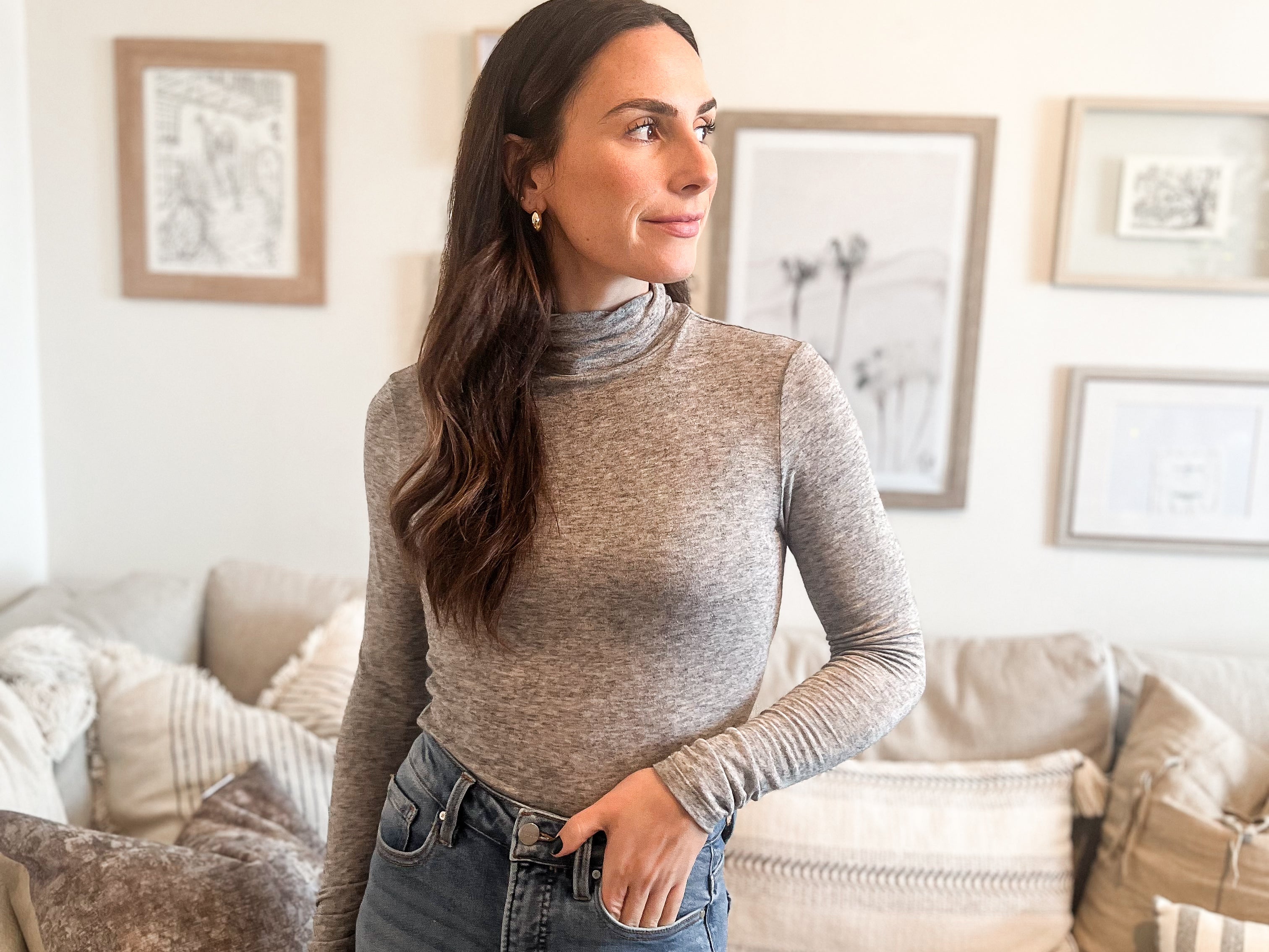The Harper high neck top is a must-have for any wardrobe! The soft and gentle fabric creates a cozy and comfortable fit, perfect for those cooler days. This beautiful piece features a blended grey/white melange colour adding a touch of elegance to any outfit. Plus, the lightweight design makes it ideal for layering.