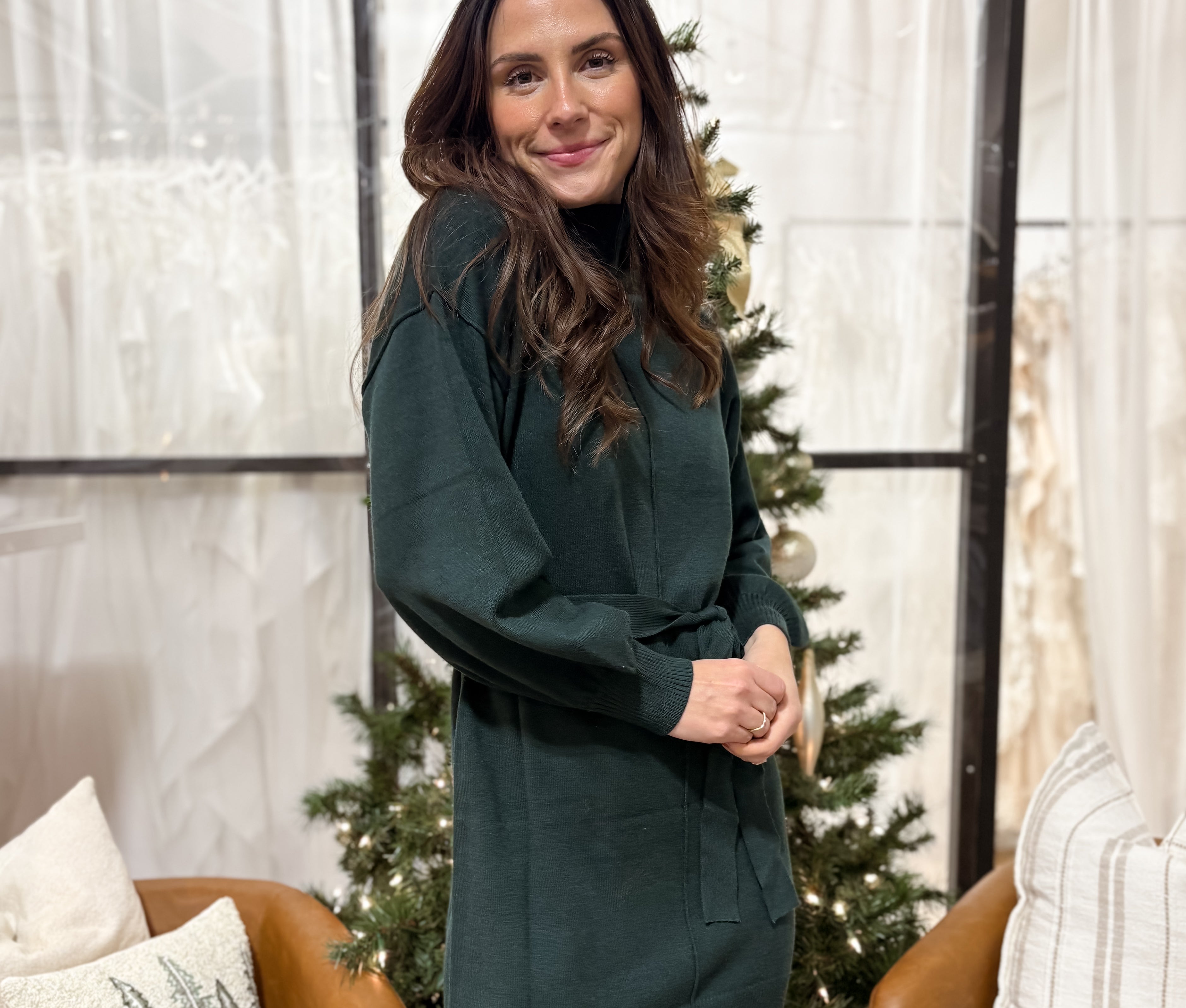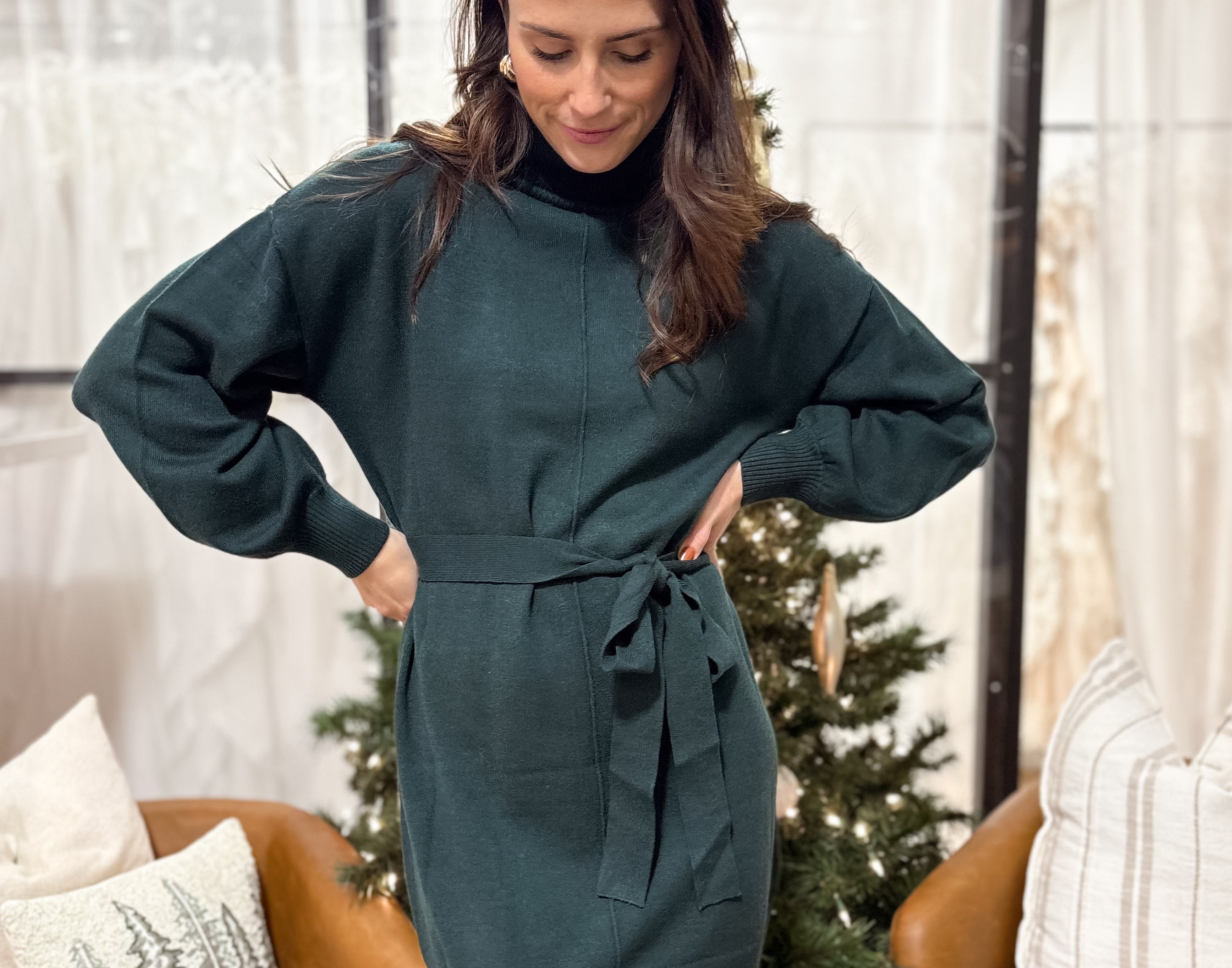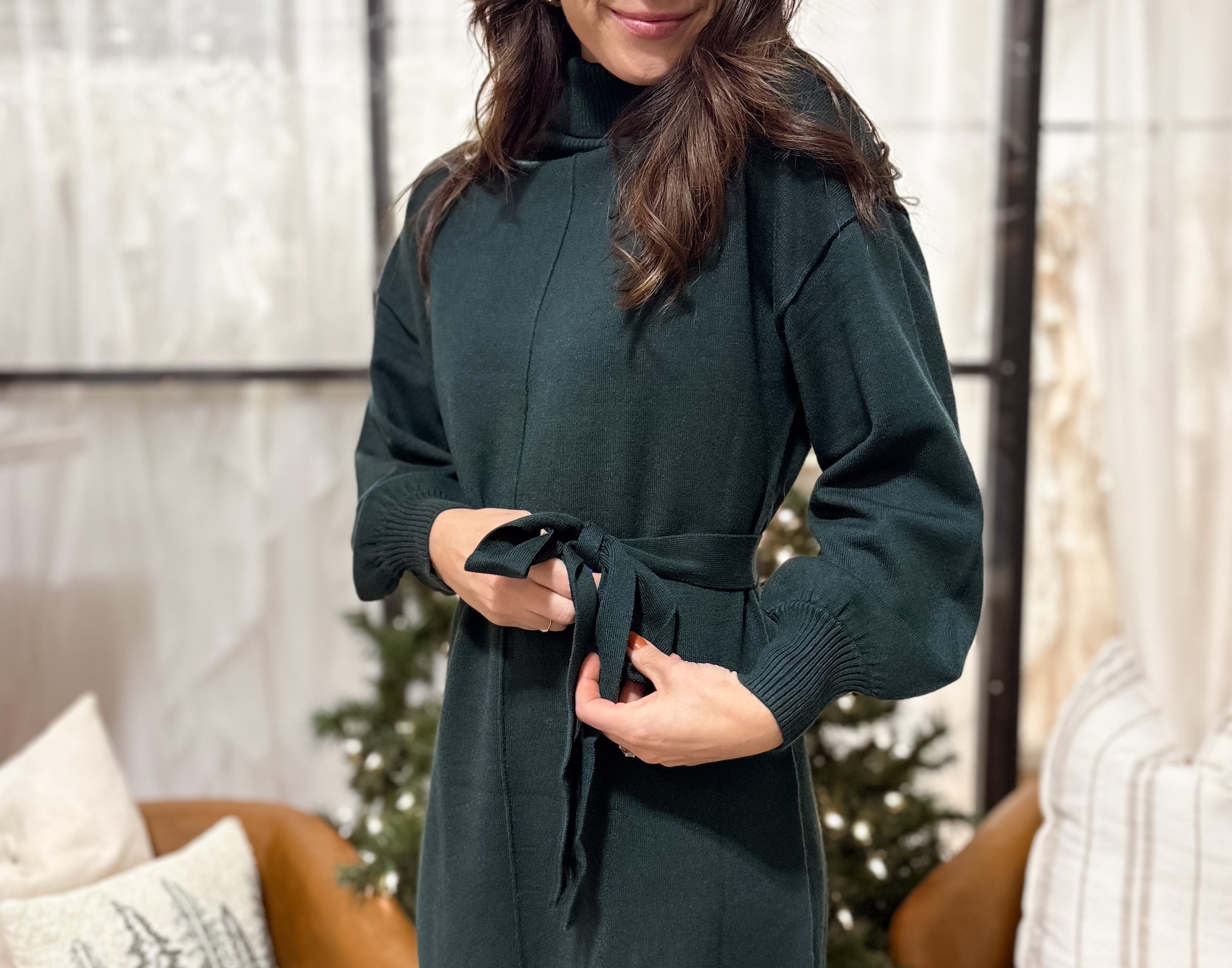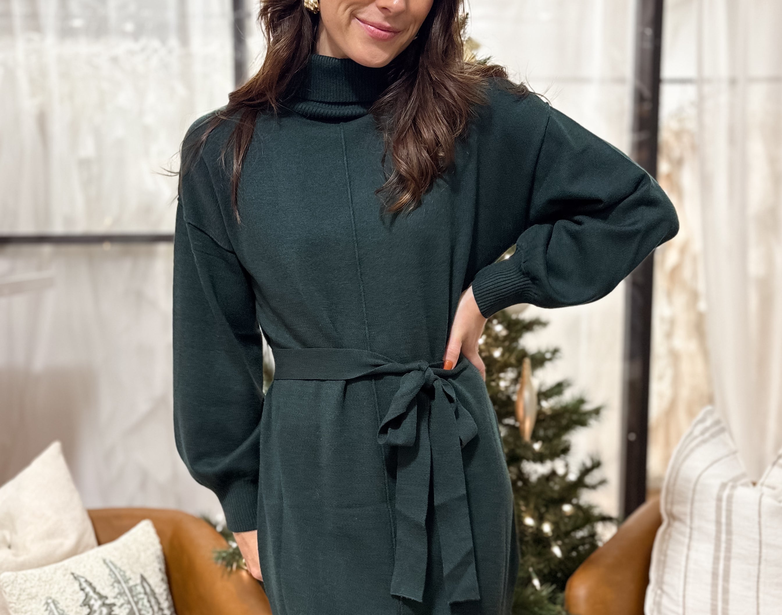 The Jayde Belted Long Sleeve Turtle Neck Mini Sweater Dress