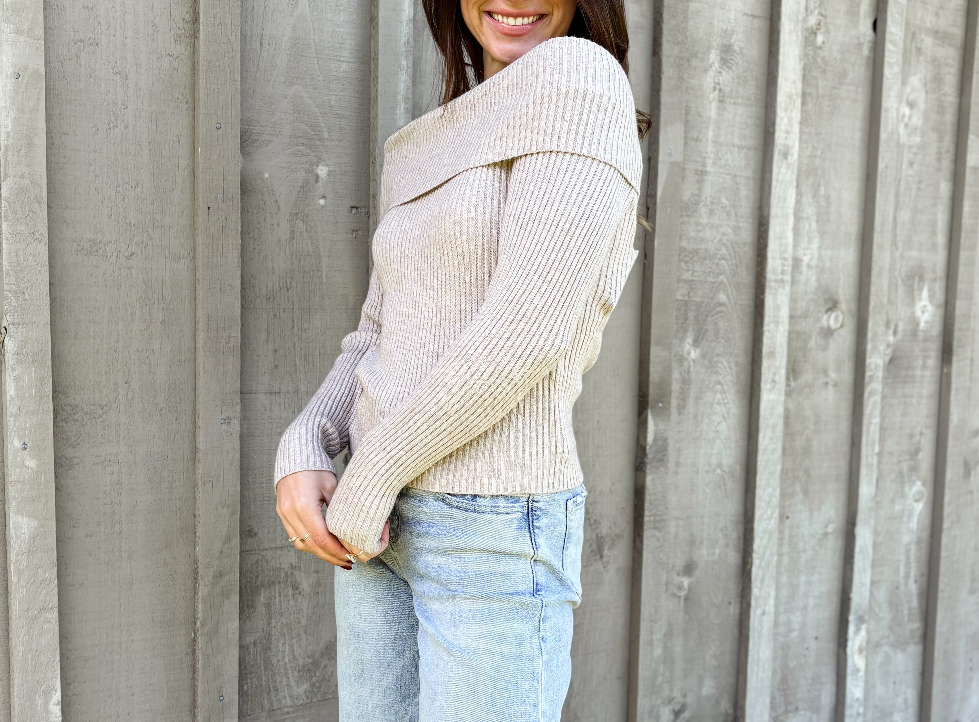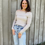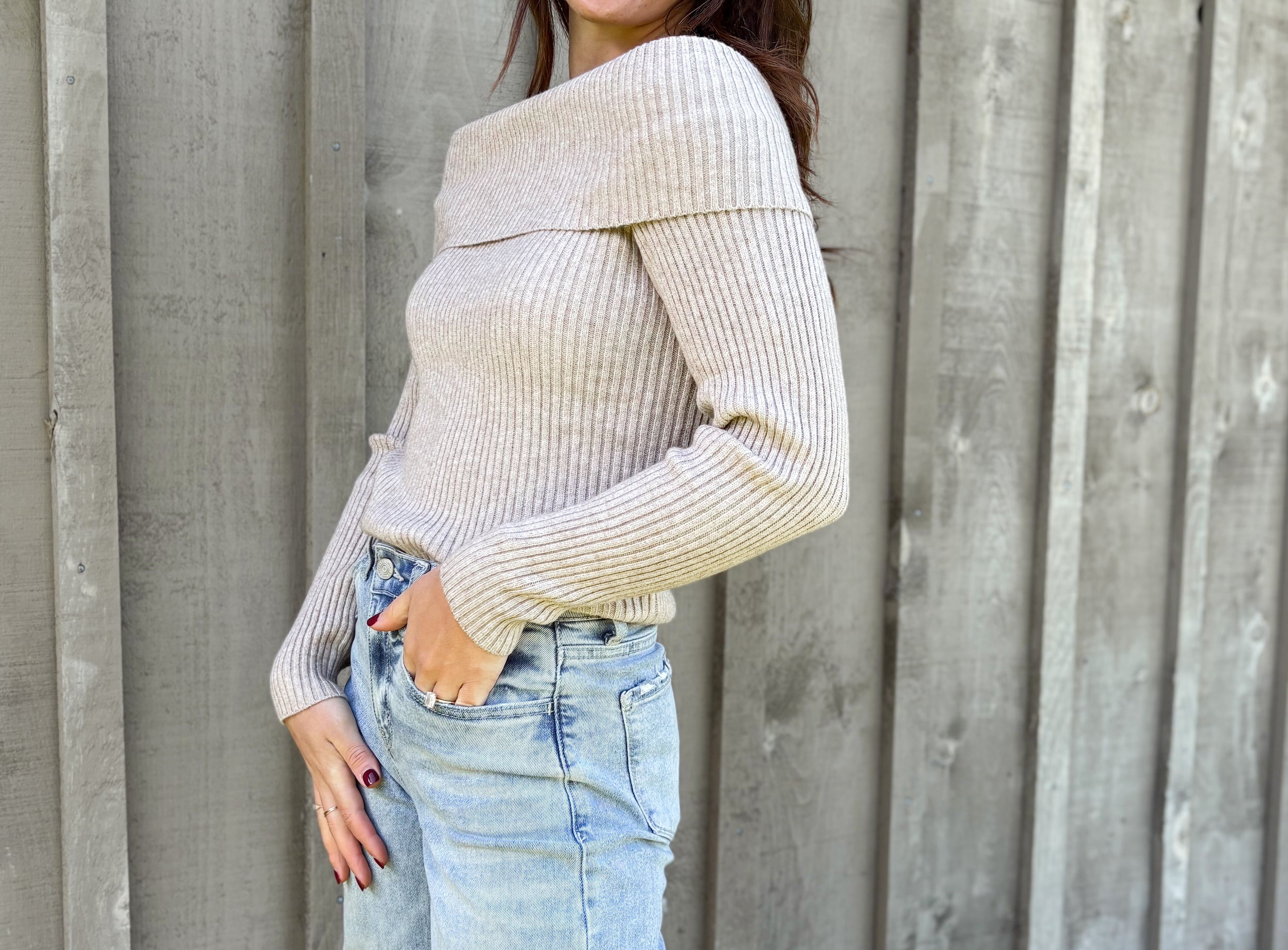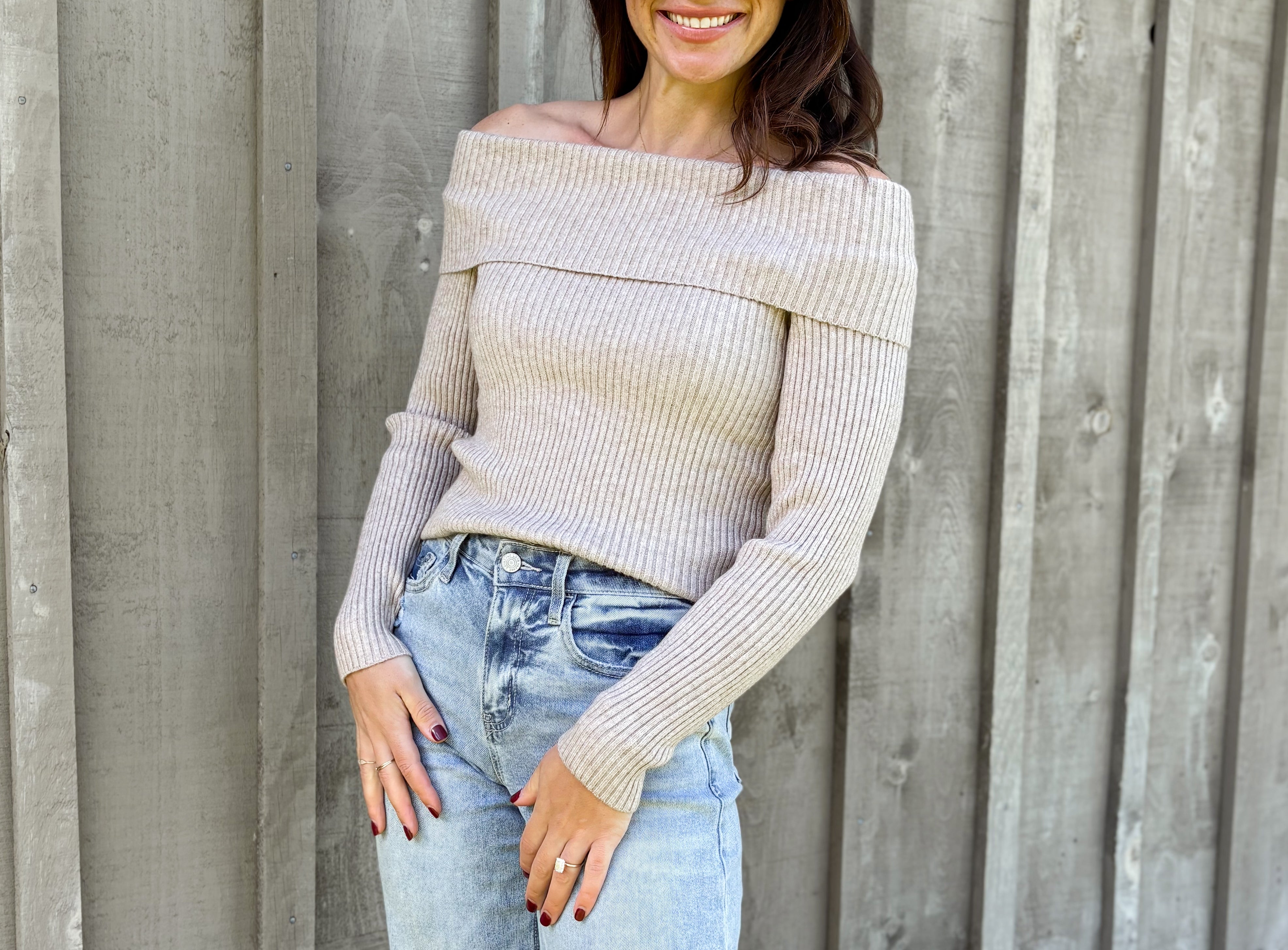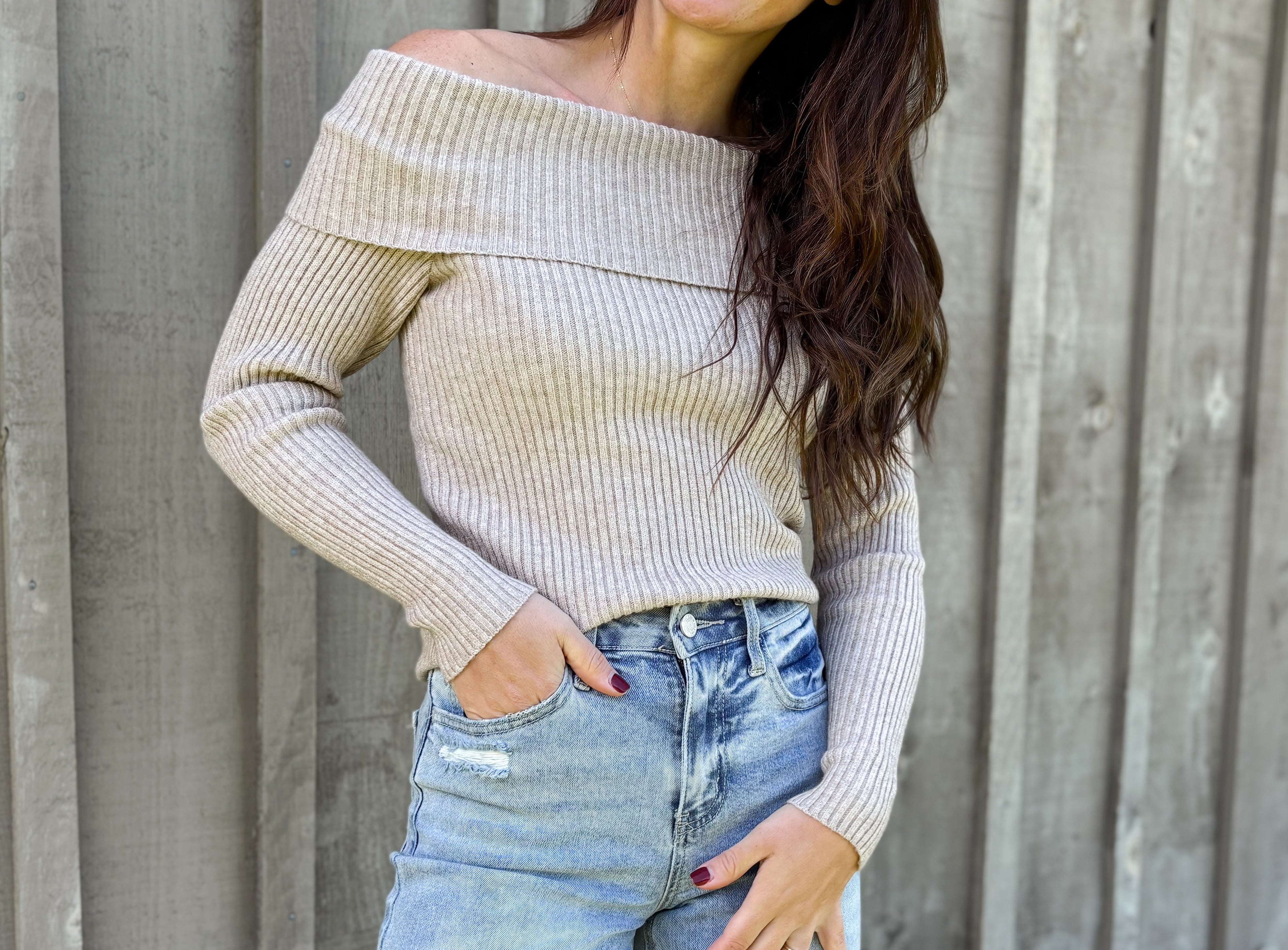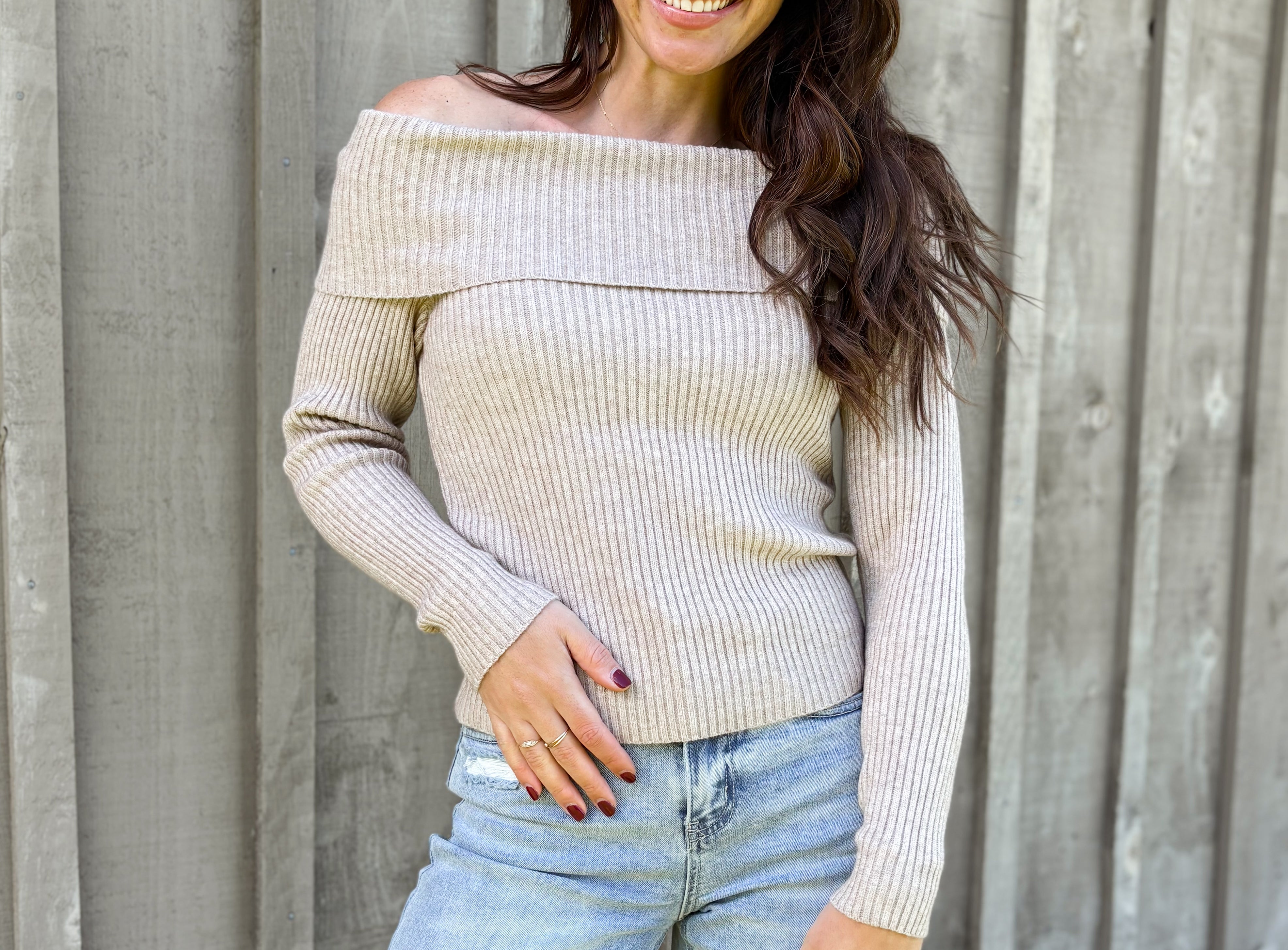 Elevate your casual wardrobe with the Katia Off the Shoulder Knit Sweater in a warm mocha meringue hue. This ribbed, soft-knit sweater features long sleeves and a flattering off-shoulder design that adds a touch of effortless elegance. It's stretchy fabric ensures a comfortable, flattering fit all day long. Perfectly paired with your favourite jeans, it’s an ideal choice for both relaxed weekends and stylish outings. Embrace cozy sophistication with this versatile piece that’s as comfortable as it is chic.