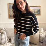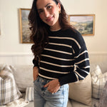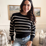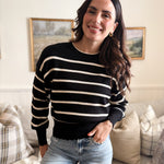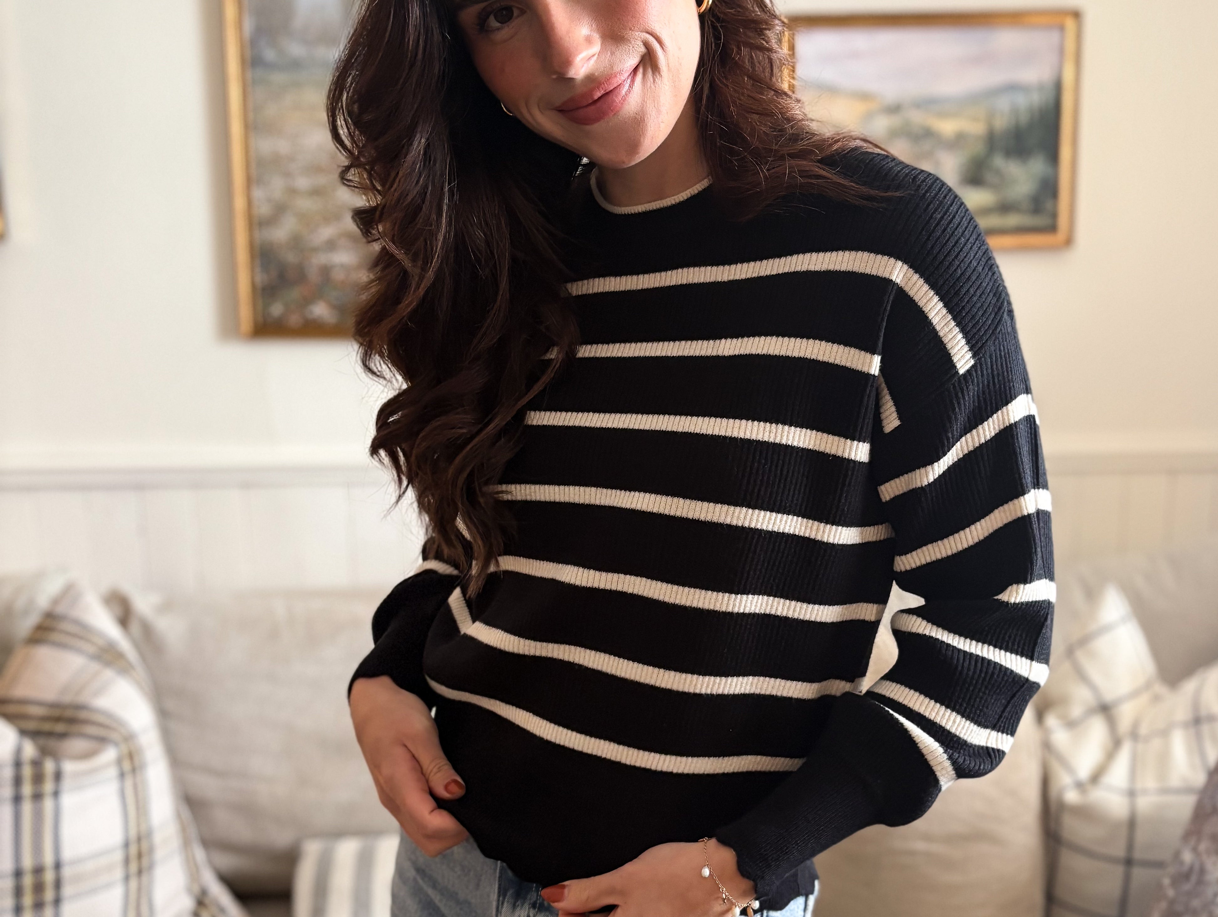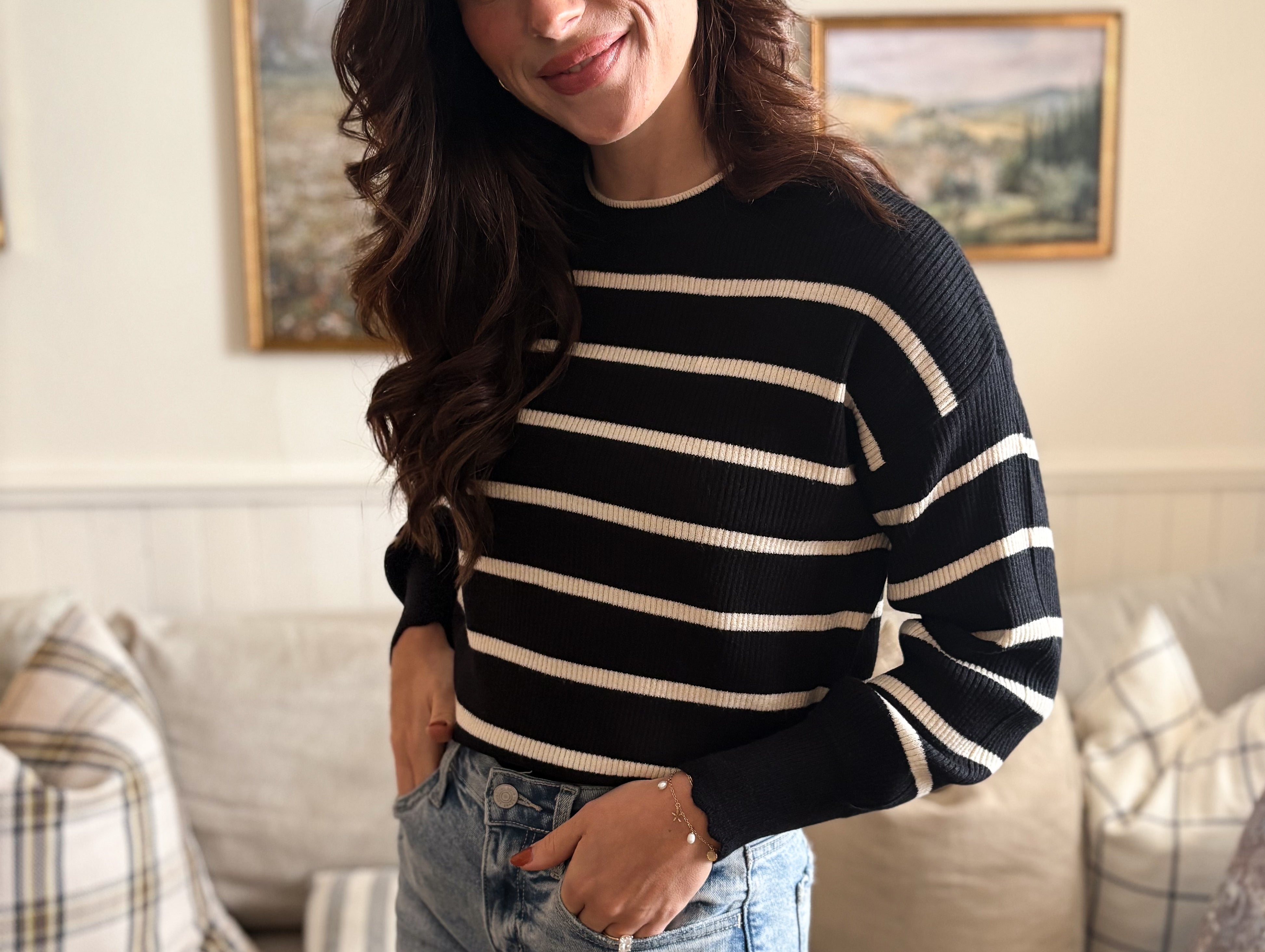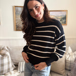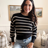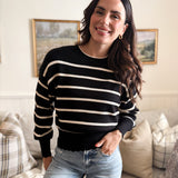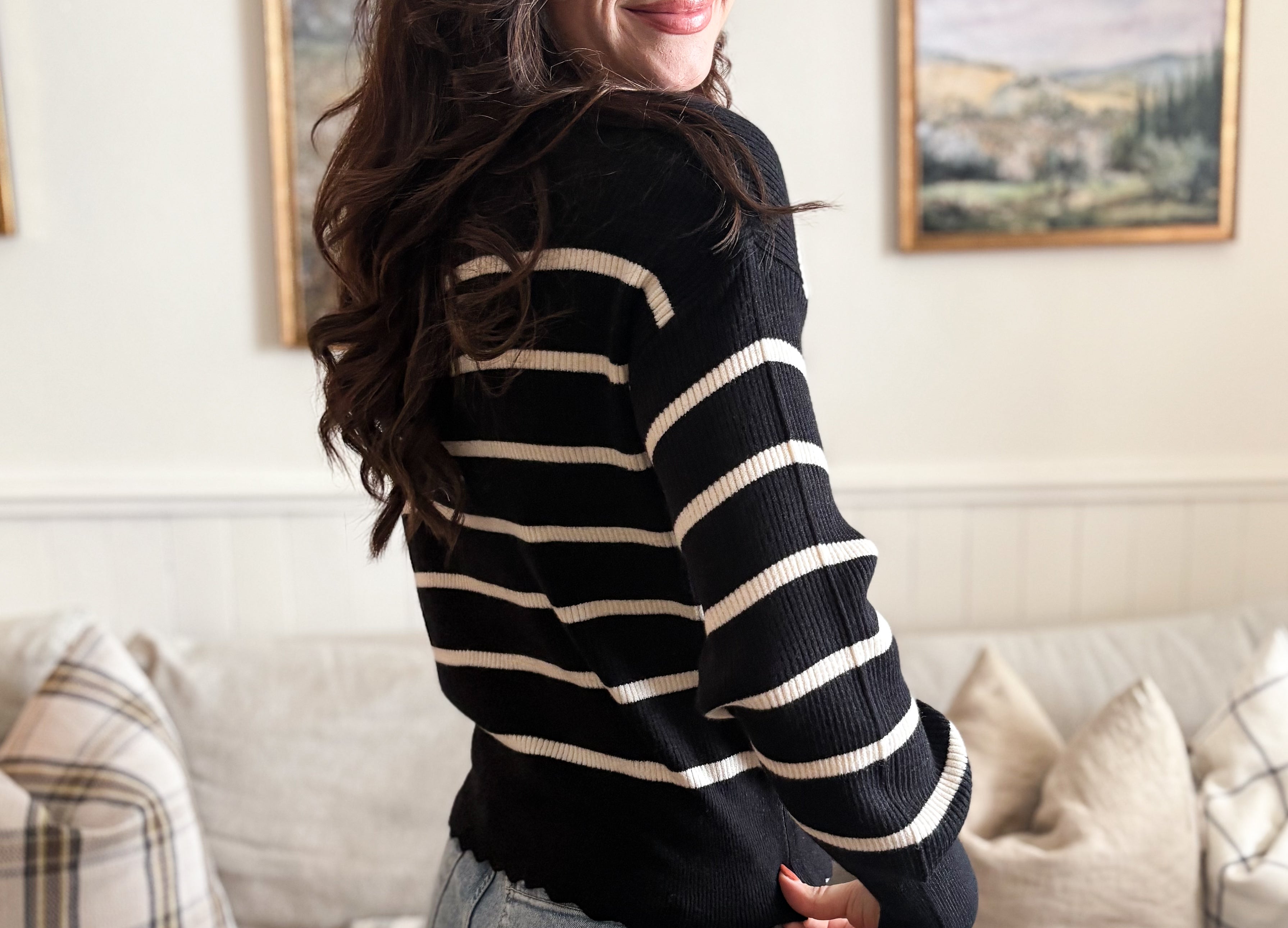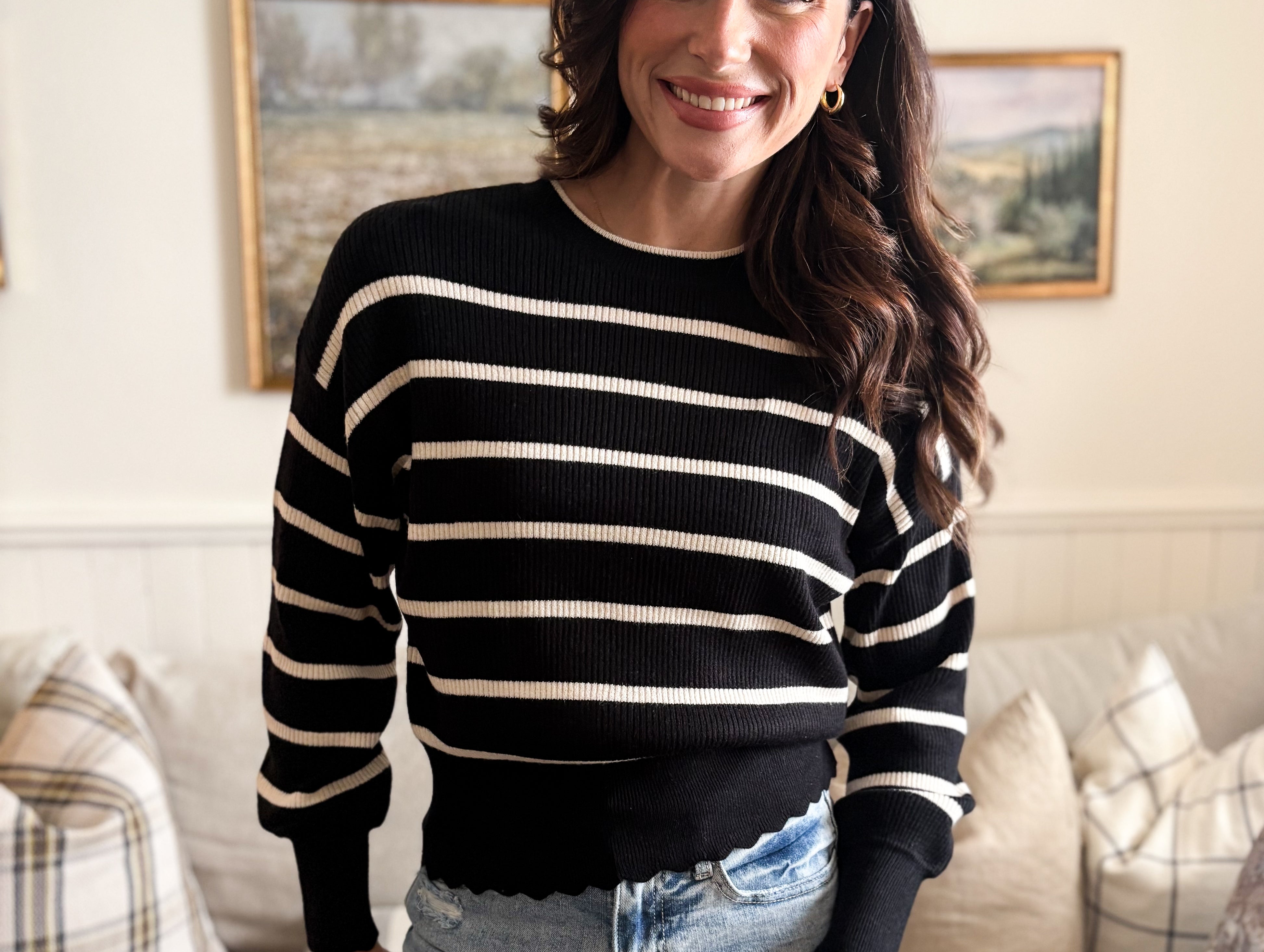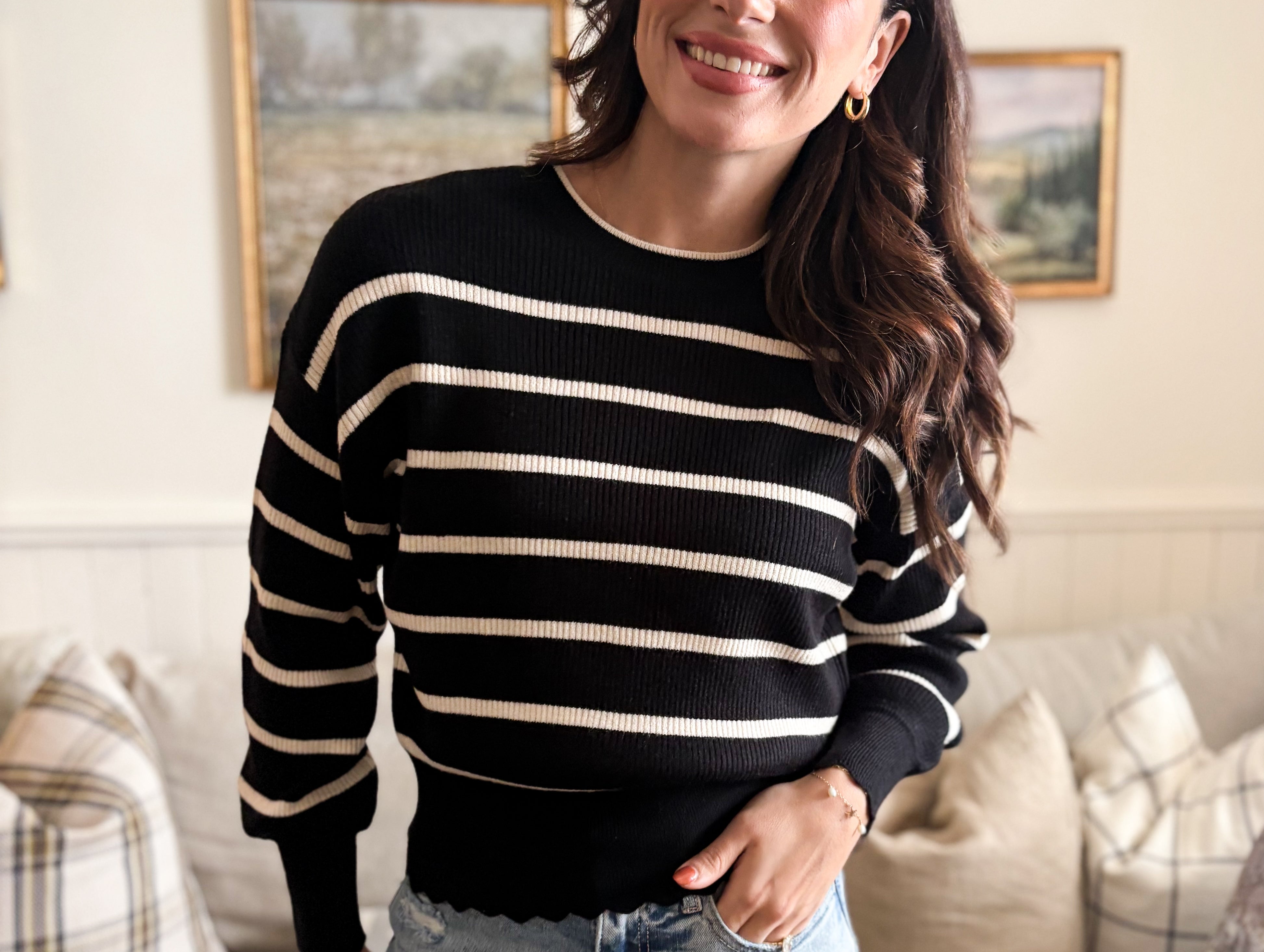 The Livie Long Sleeve Stripe Knit Sweater with Scalloped Edge