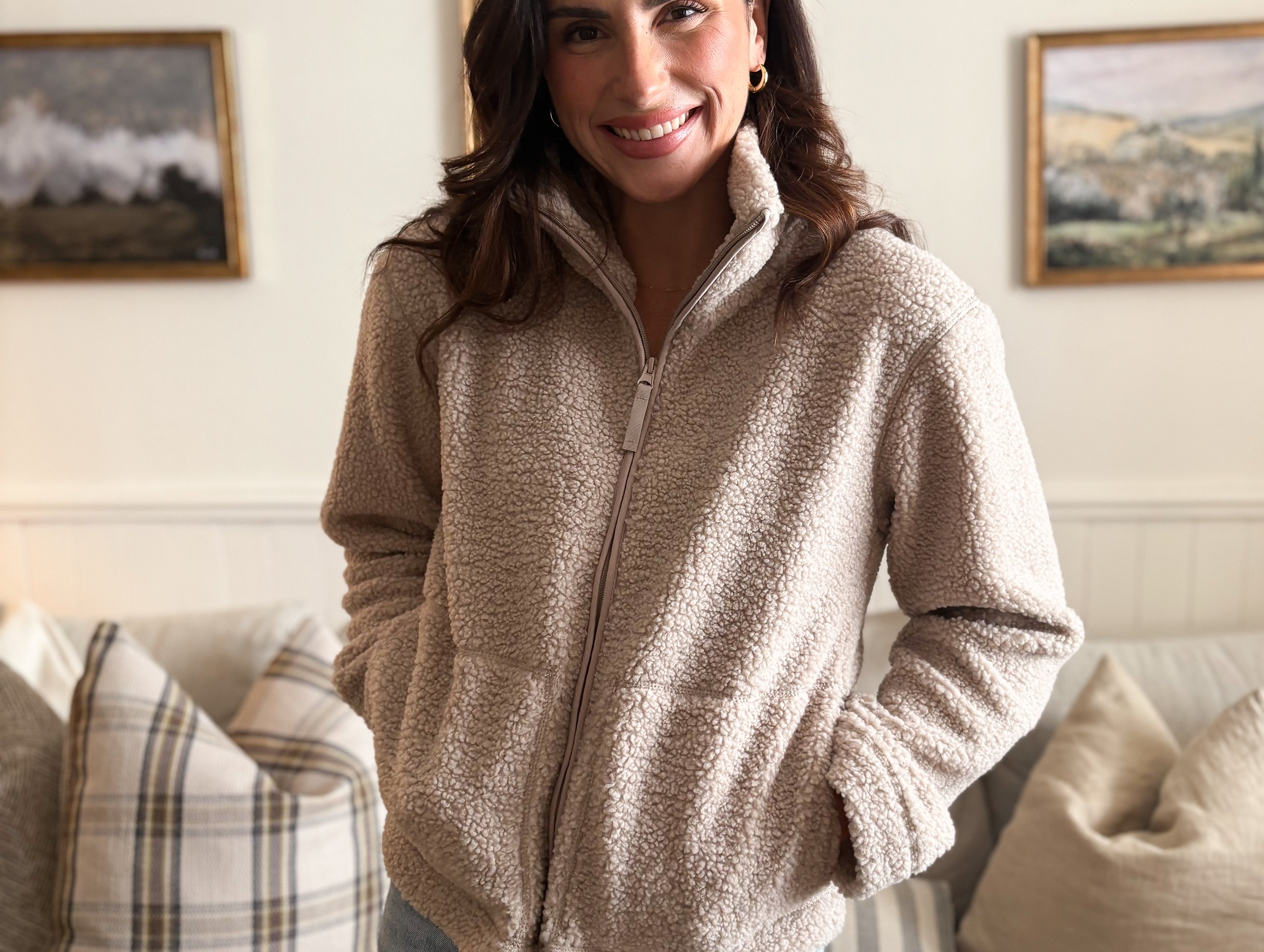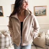 Wrap yourself in cozy comfort with The Megan Teddy Jacket, your new go-to layer for effortless style. Crafted in soft oatmeal sherpa, this zip-up jacket features a classic collar and generously sized pockets—perfect for keeping your hands warm or storing essentials. The plush teddy texture adds a touch of luxury to any outfit, whether you're running errands or relaxing at home. Versatile, inviting, and undeniably soft, this jacket is the wardrobe staple you've been waiting for.