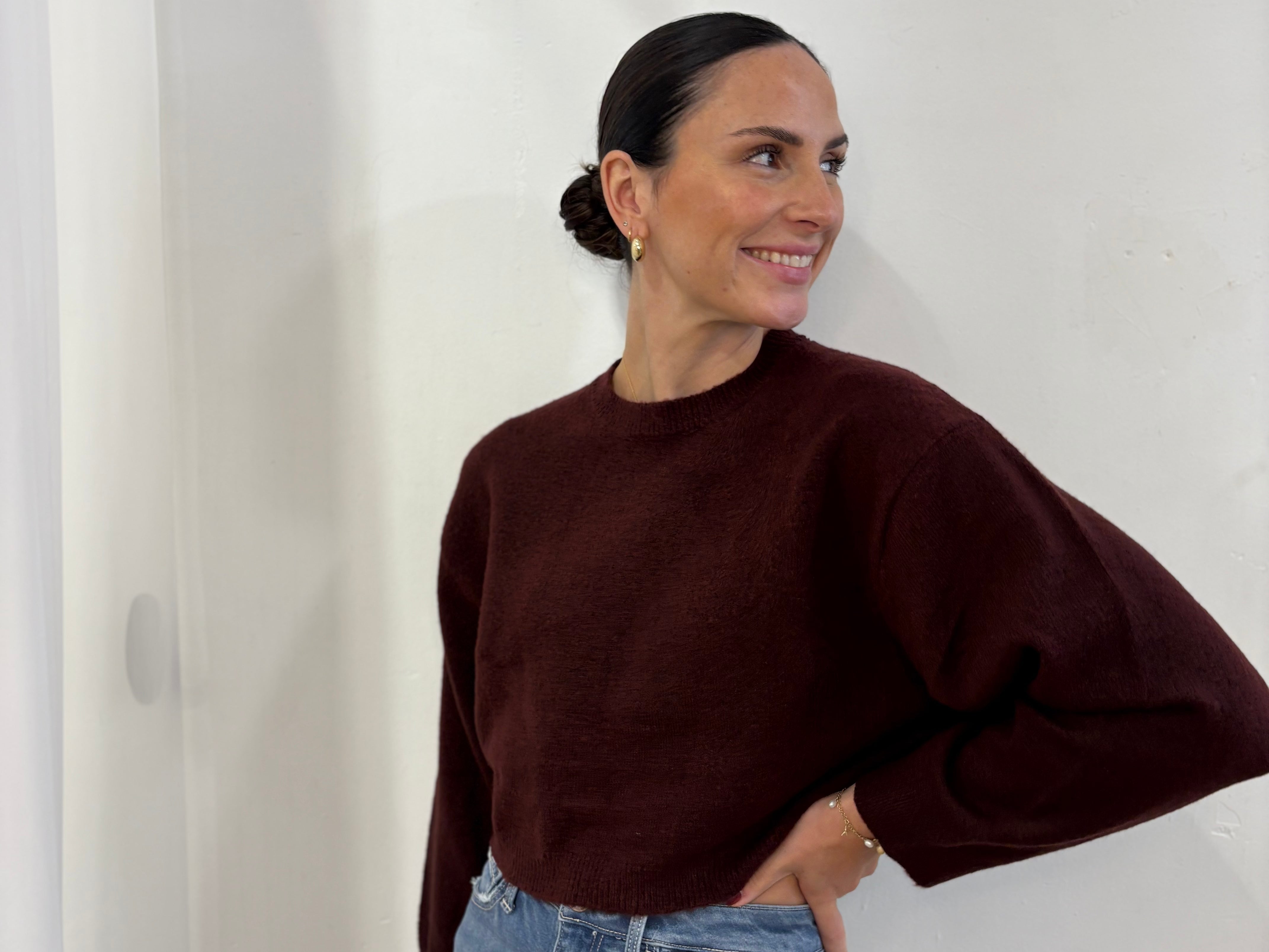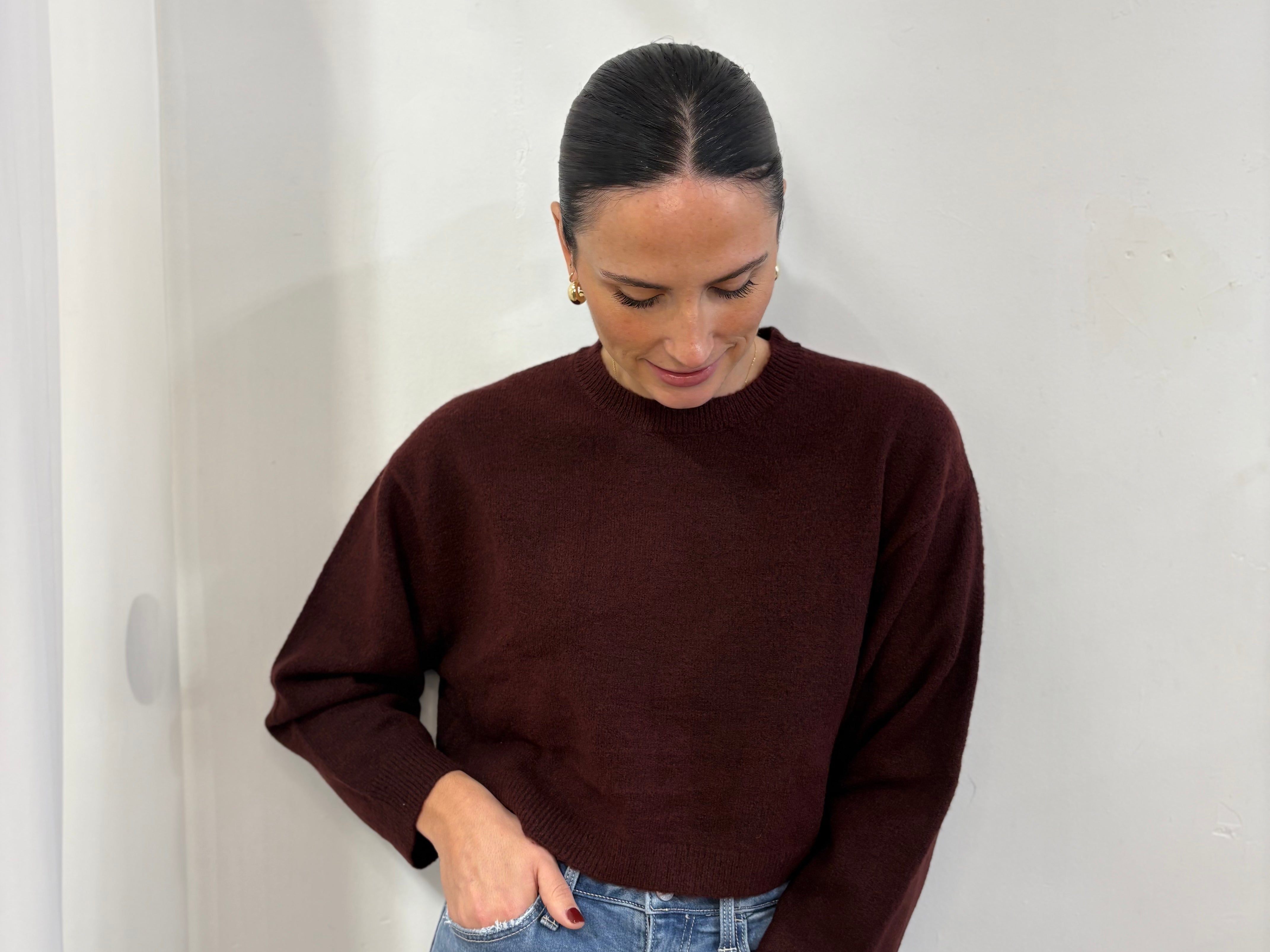 The Monica Crew Neck Long Sleeve Cropped Pullover Sweater