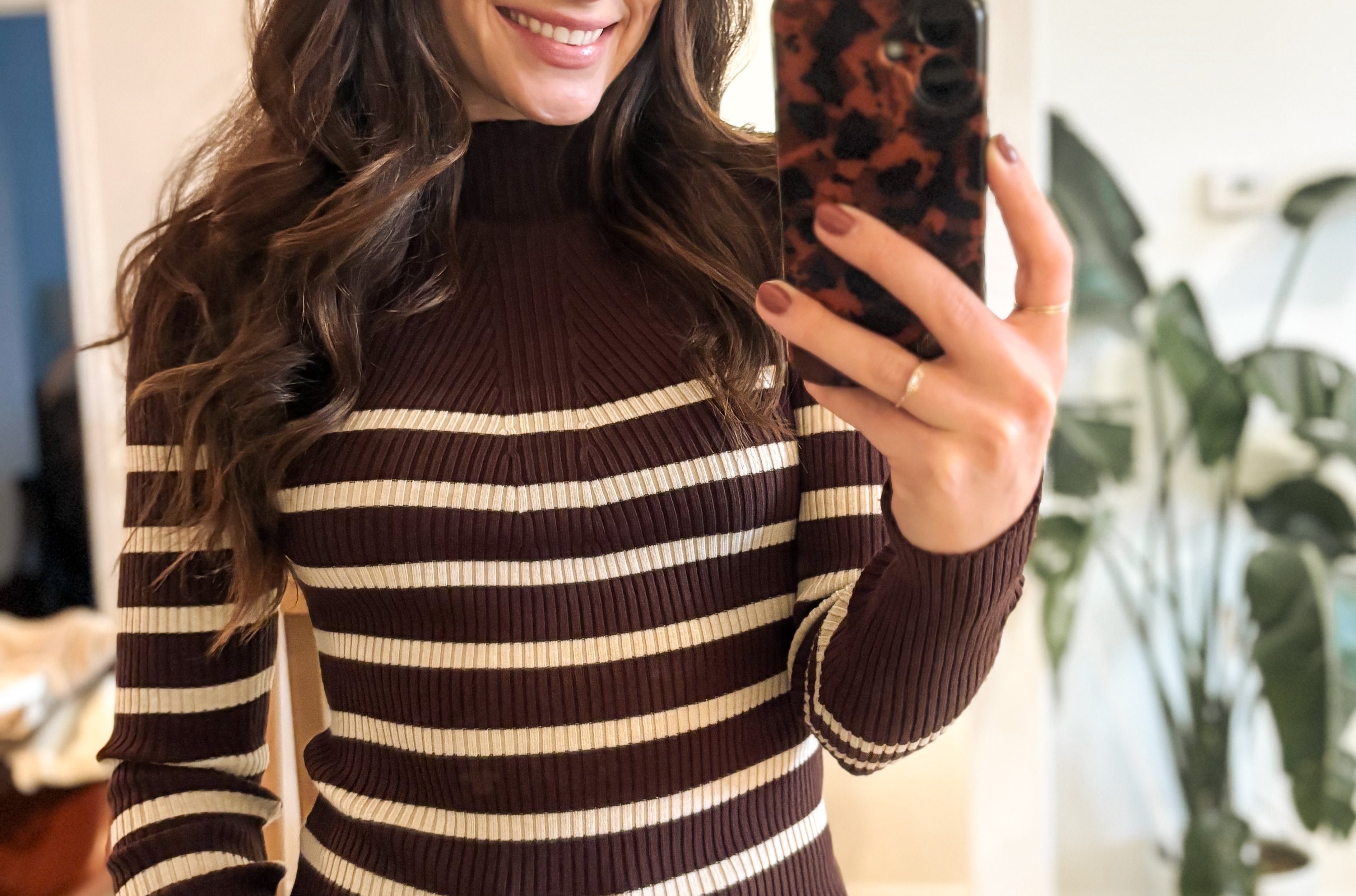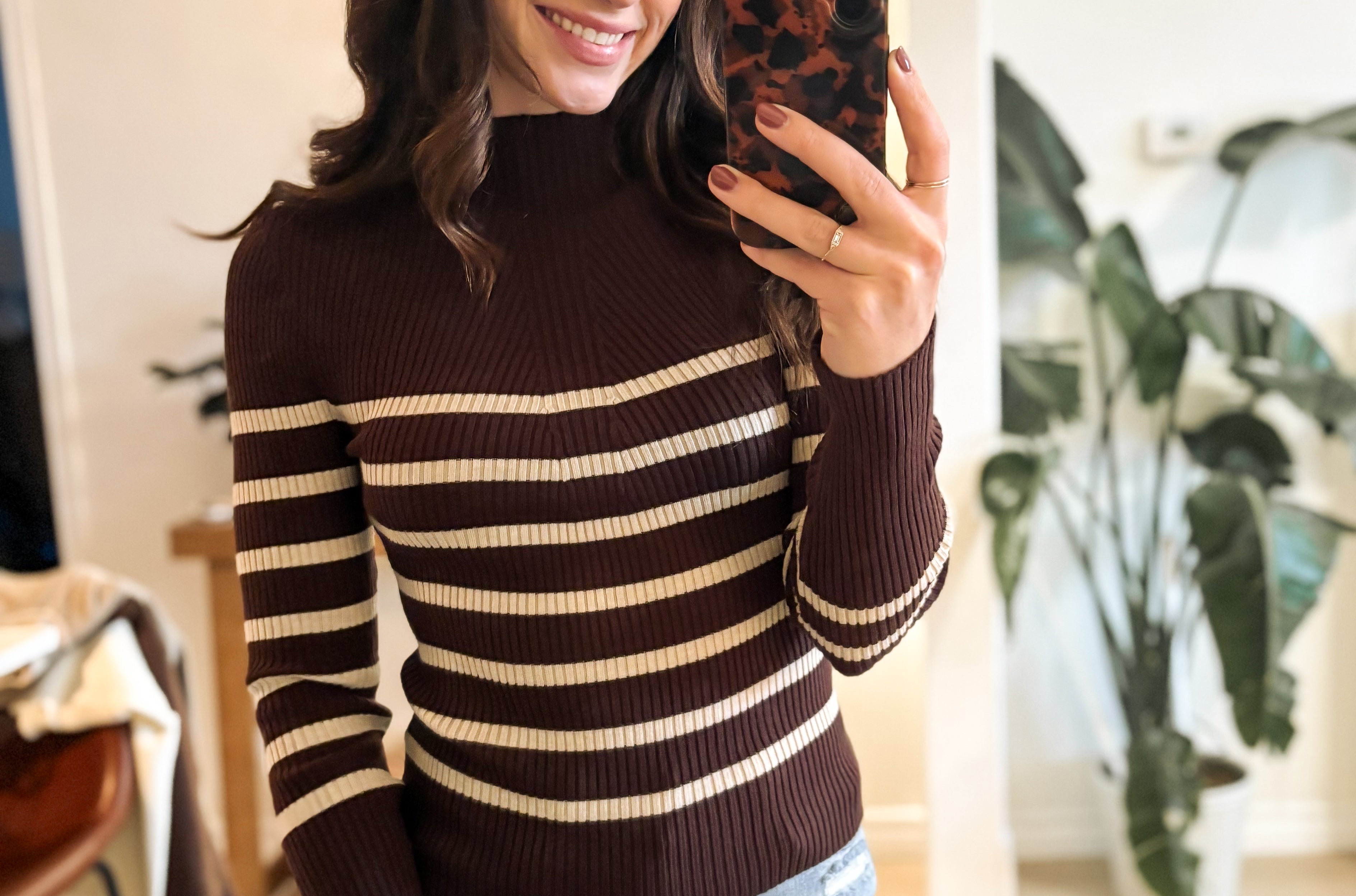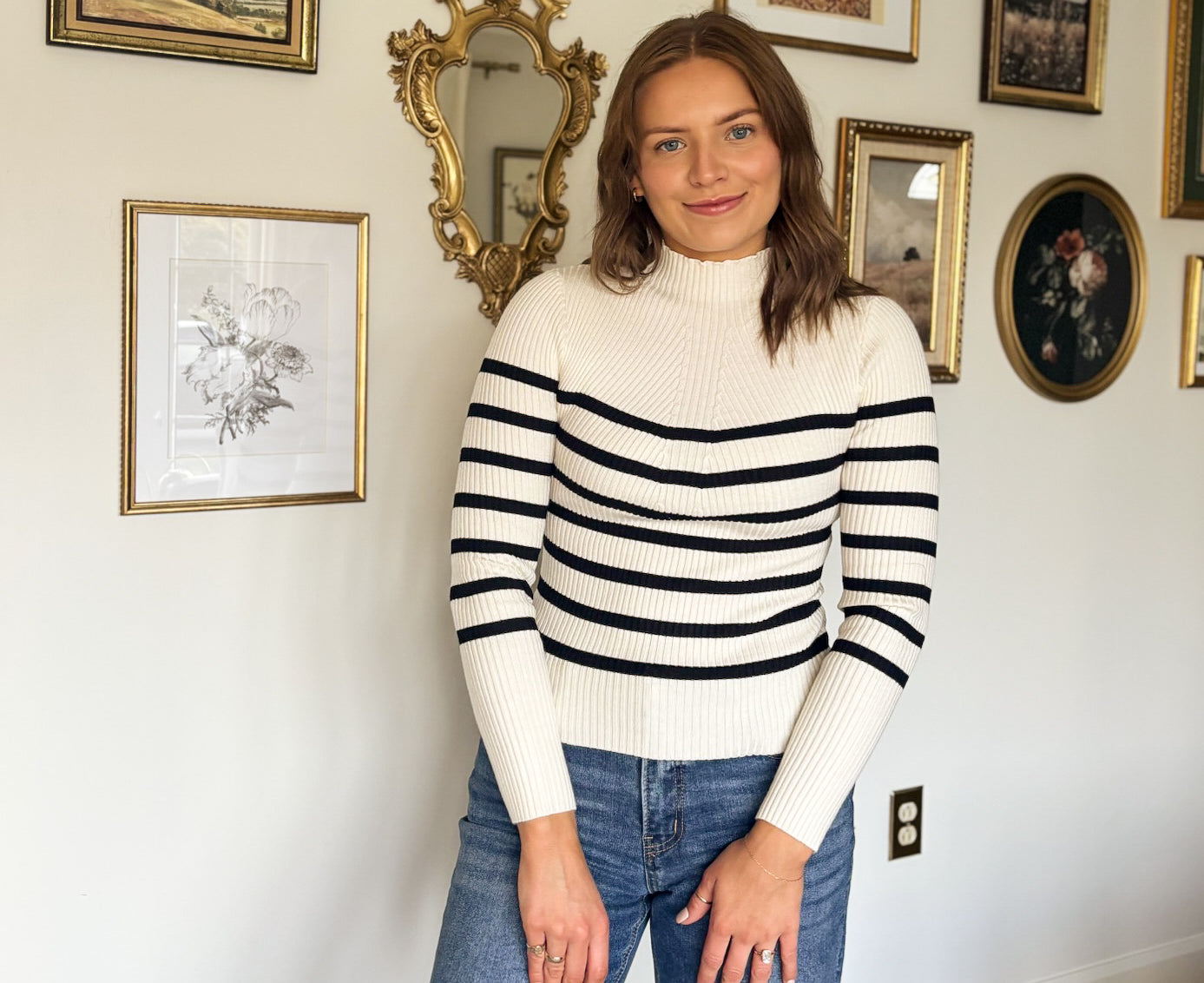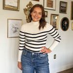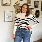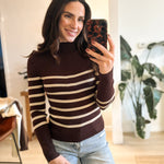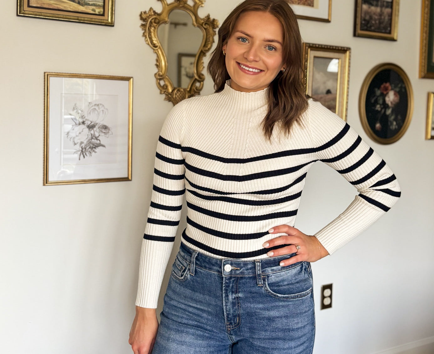The Monique Mock Neck Stripe Long Sleeve Sweater Knit Pullover