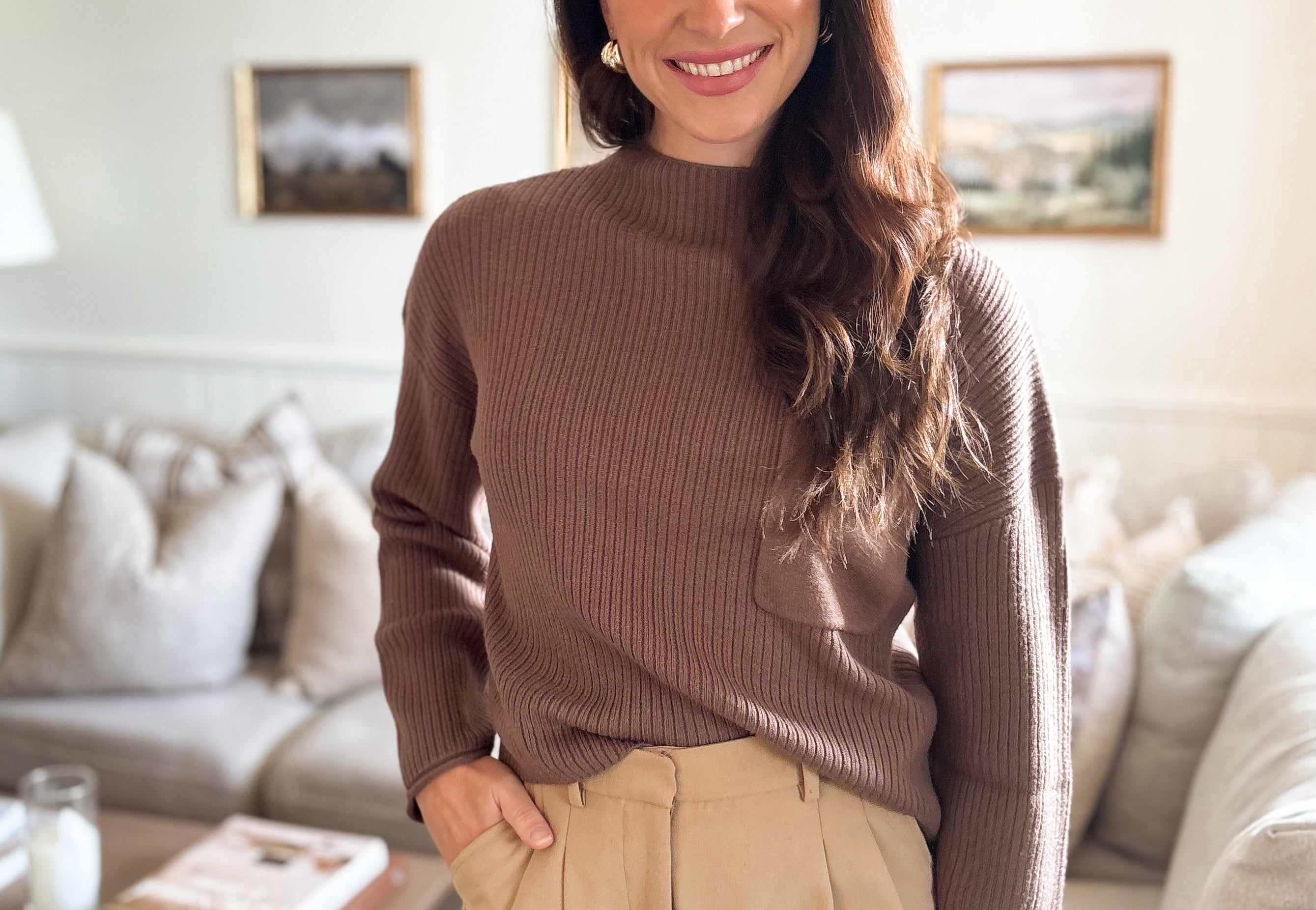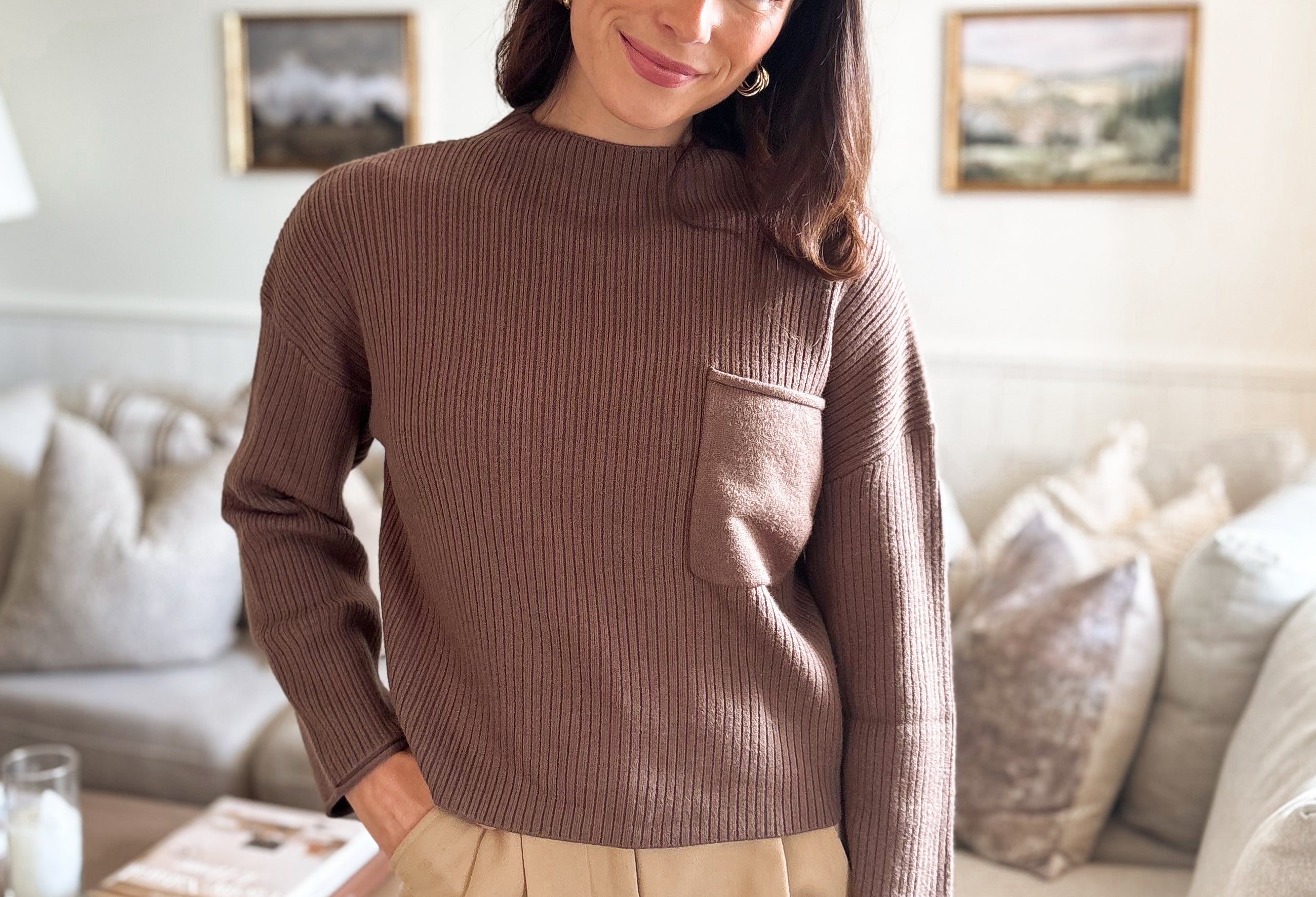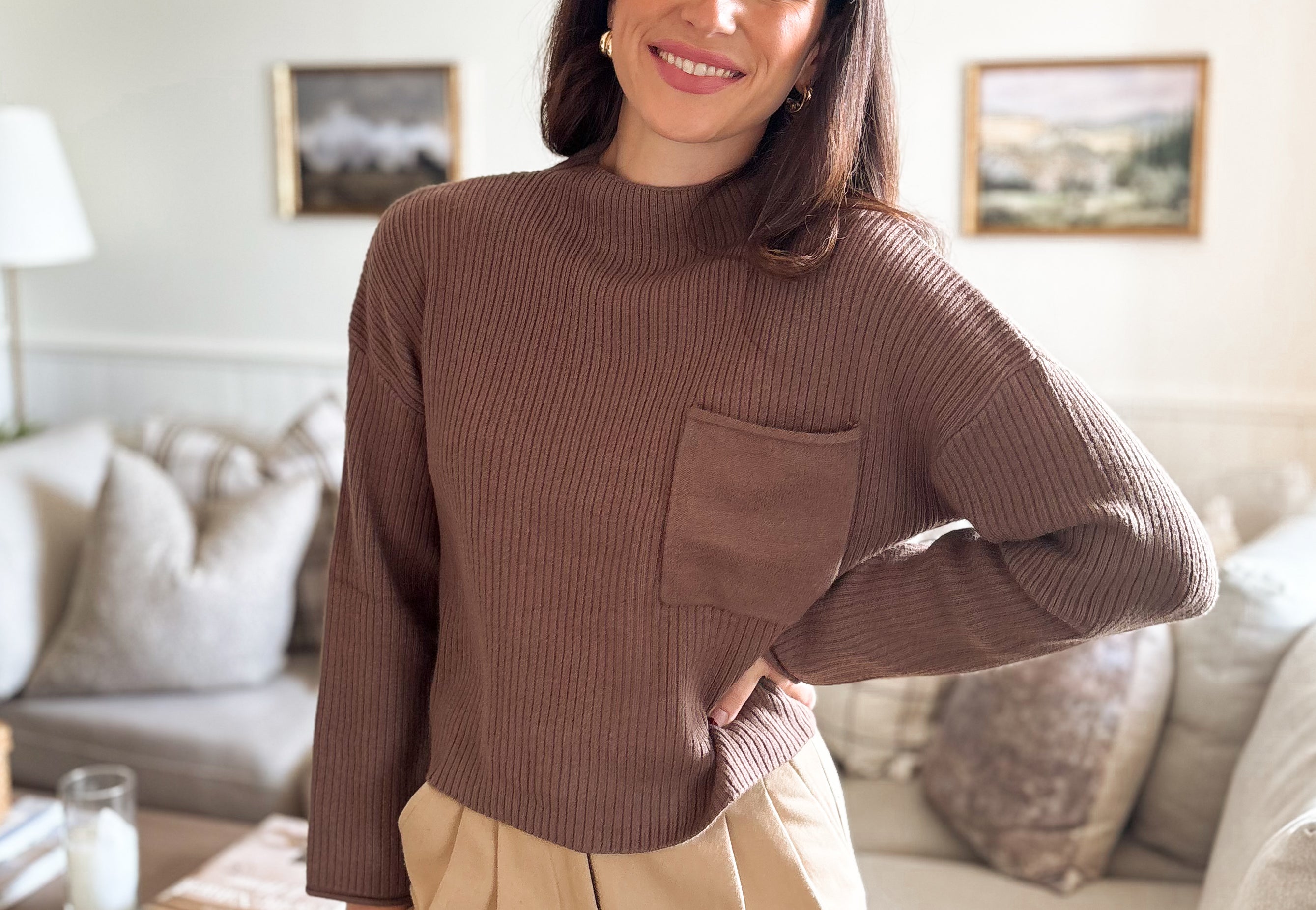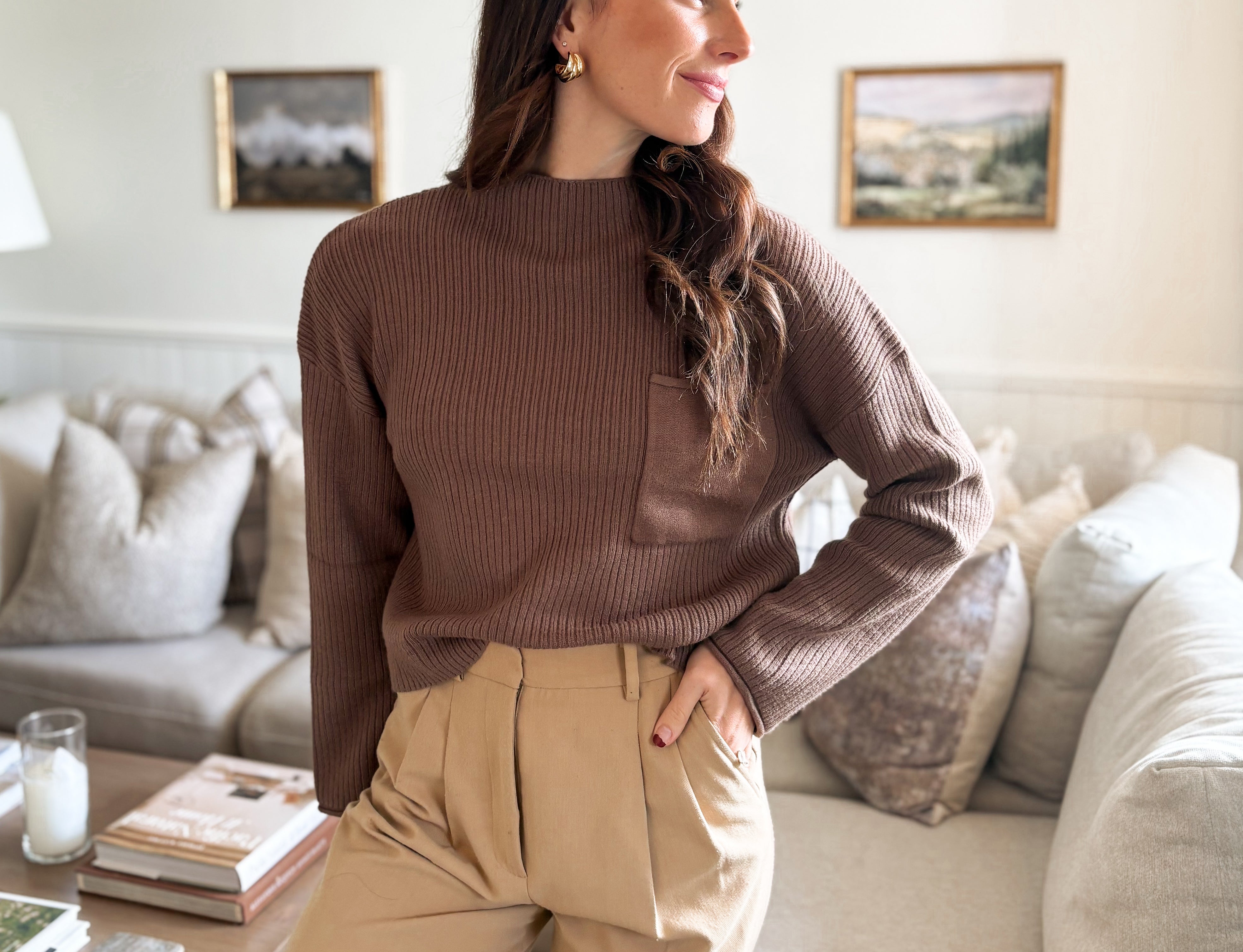 The Nelly Mock Neck Pocket Detail Long Sleeve Sweater