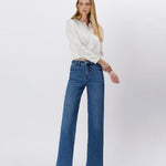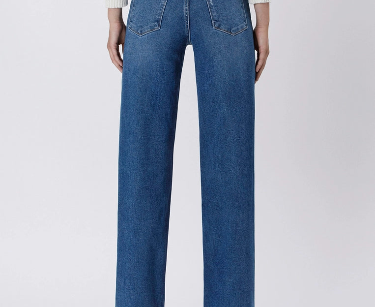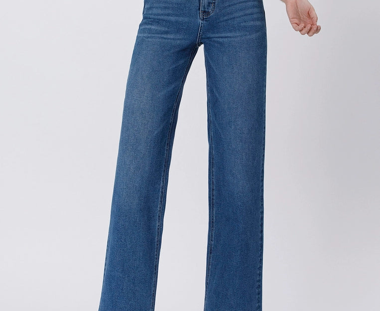 Elevate your denim game with these 90's-inspired super high rise wide leg jeans, designed to flatter and comfort. Featuring innovative tummy control technology with inner shaping panels, these jeans smooth and sculpt while you move. Crafted from comfort stretch denim with a lightly distressed finish, they deliver that coveted vintage aesthetic without compromising on modern support. The finished hem and full length create a polished silhouette that works with everything in your wardrobe.