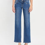 The Rudie Mid Rise Straight Leg Denim delivers timeless style with modern comfort. Crafted from stretch denim, these jeans feature a flattering mid-rise waist and classic straight leg silhouette that works with everything in your closet. The medium dark wash pairs beautifully with lightly distressed detailing for an effortlessly cool edge. Five functional pockets and a finished hem complete the polished look. Whether you're dressing up or down, The Rudie offers the perfect balance of durability and all-day wearability.