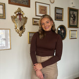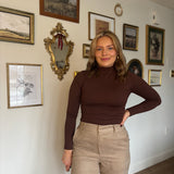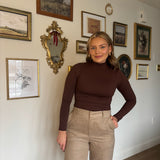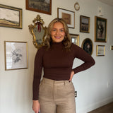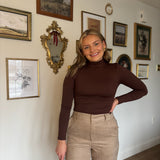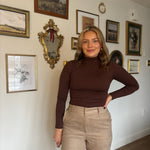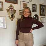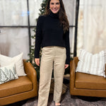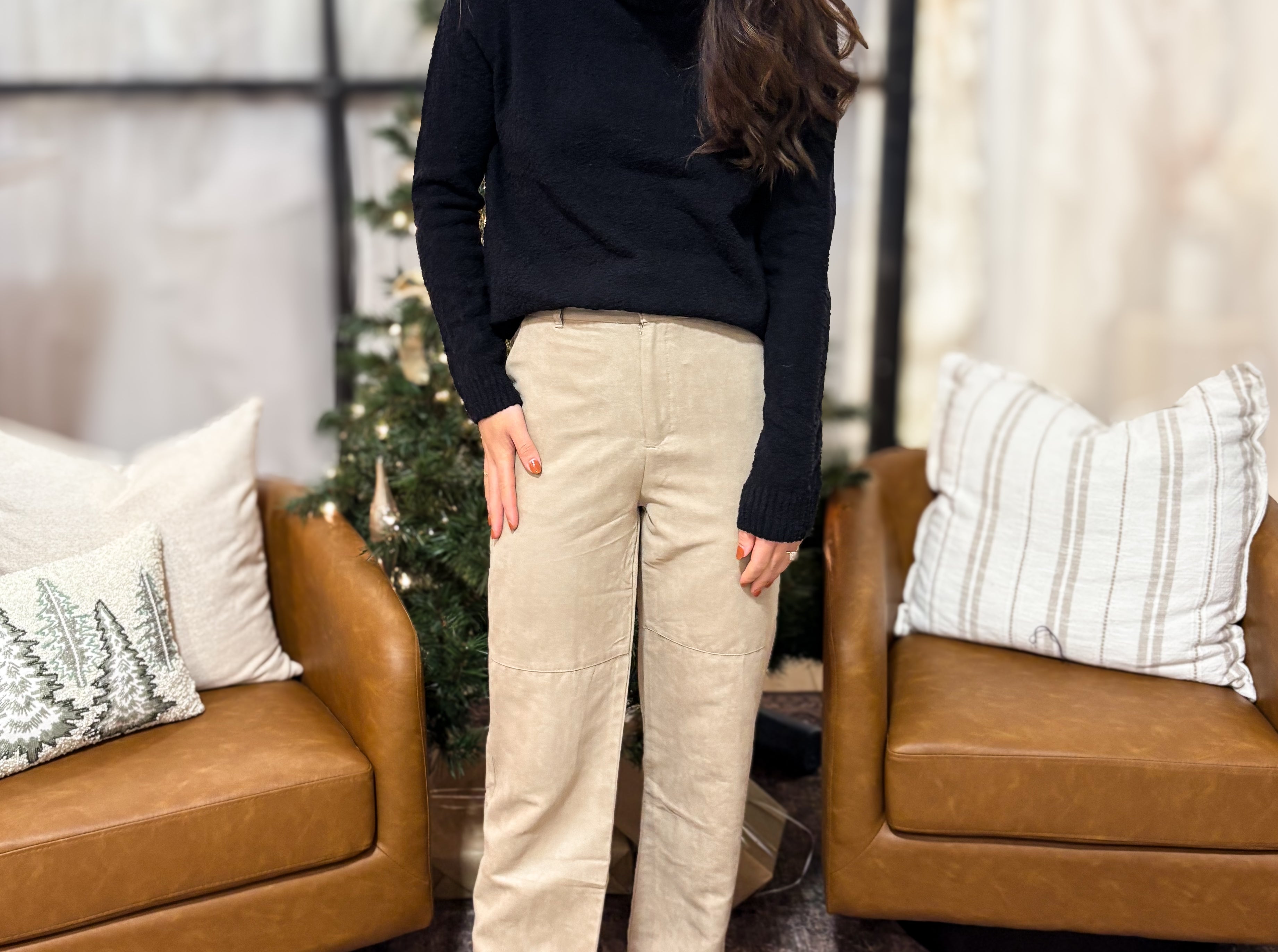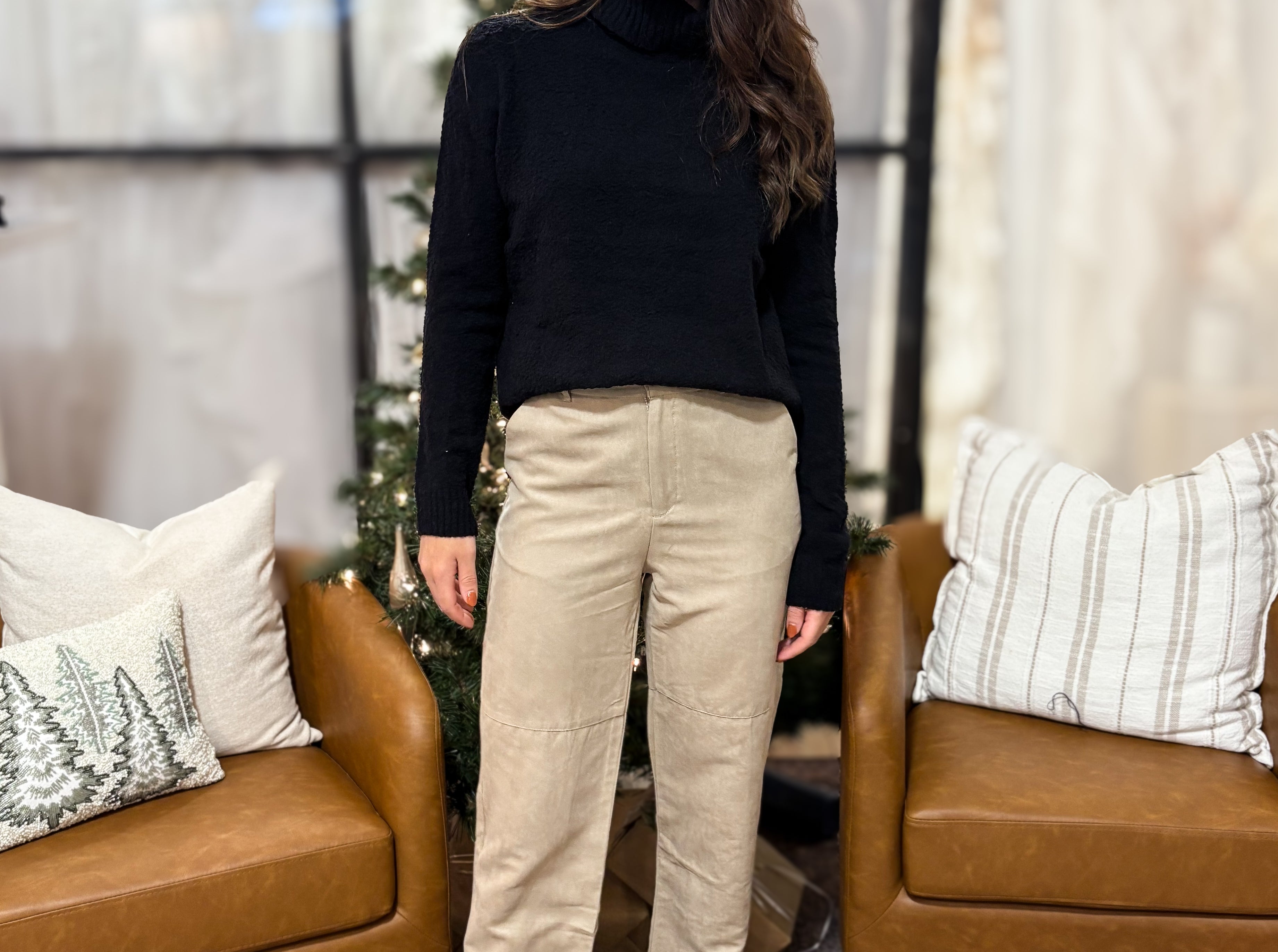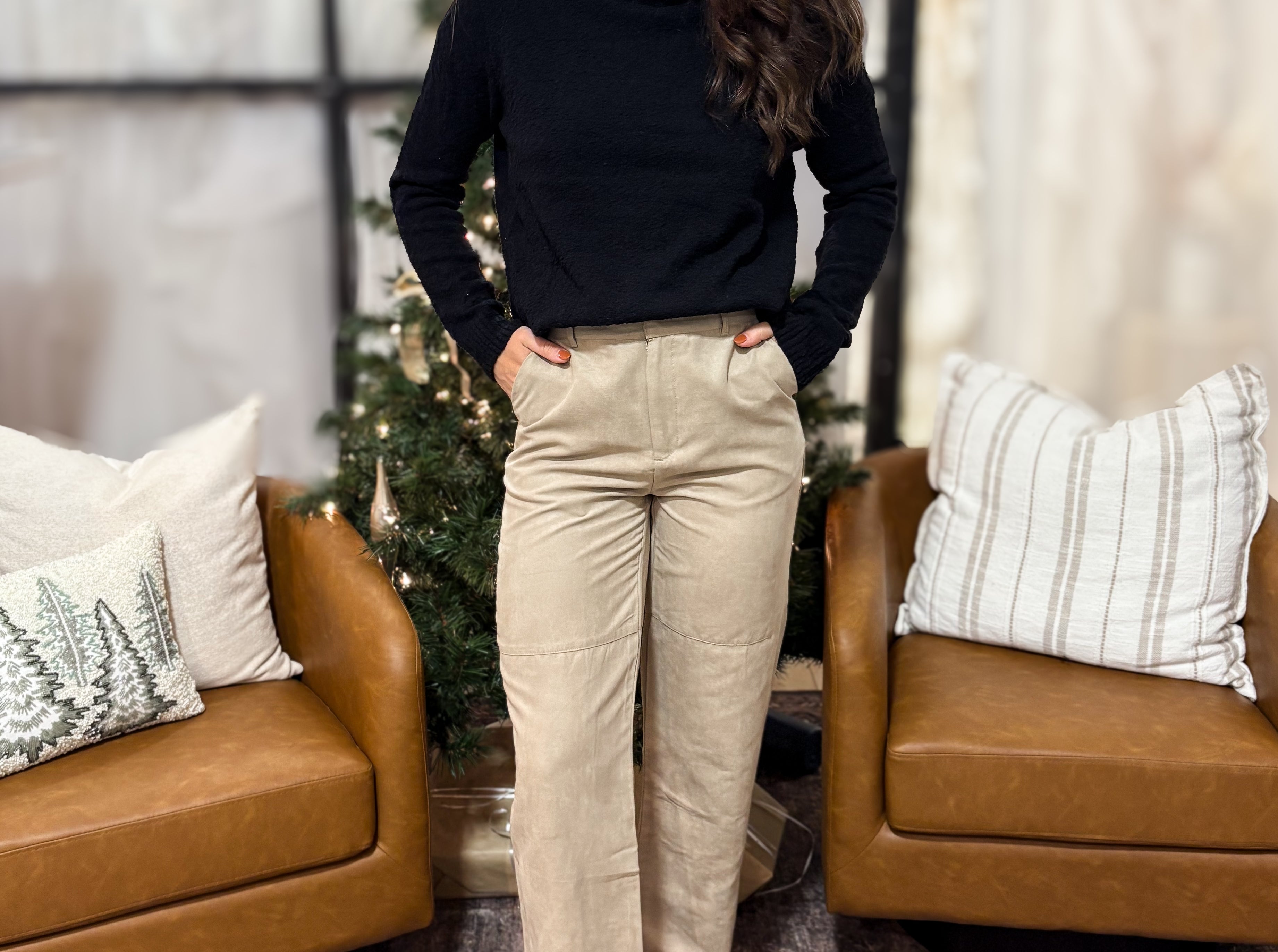 The Sandi Faux Suede Straight Leg Woven Pants in Dark Beige