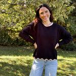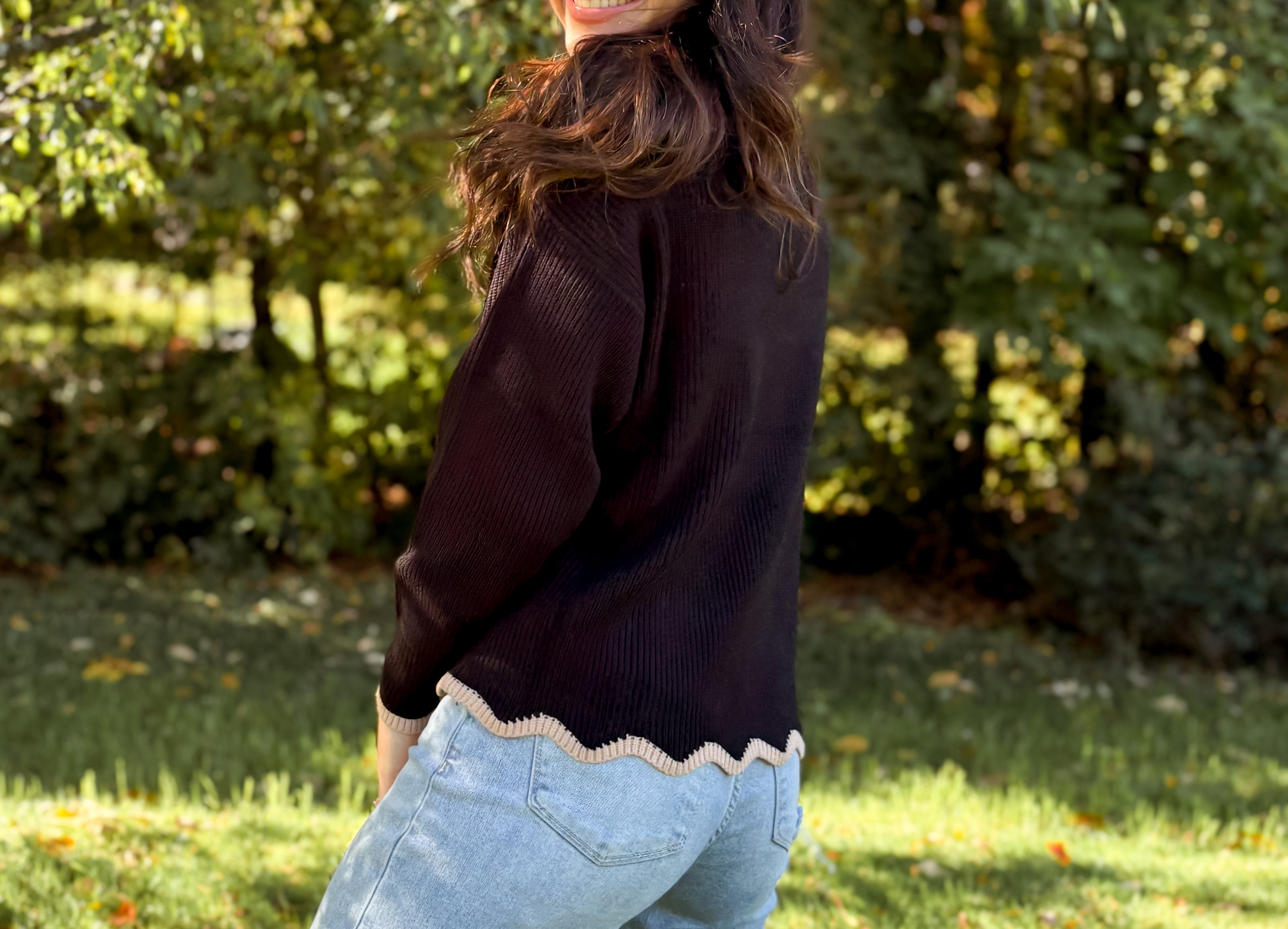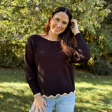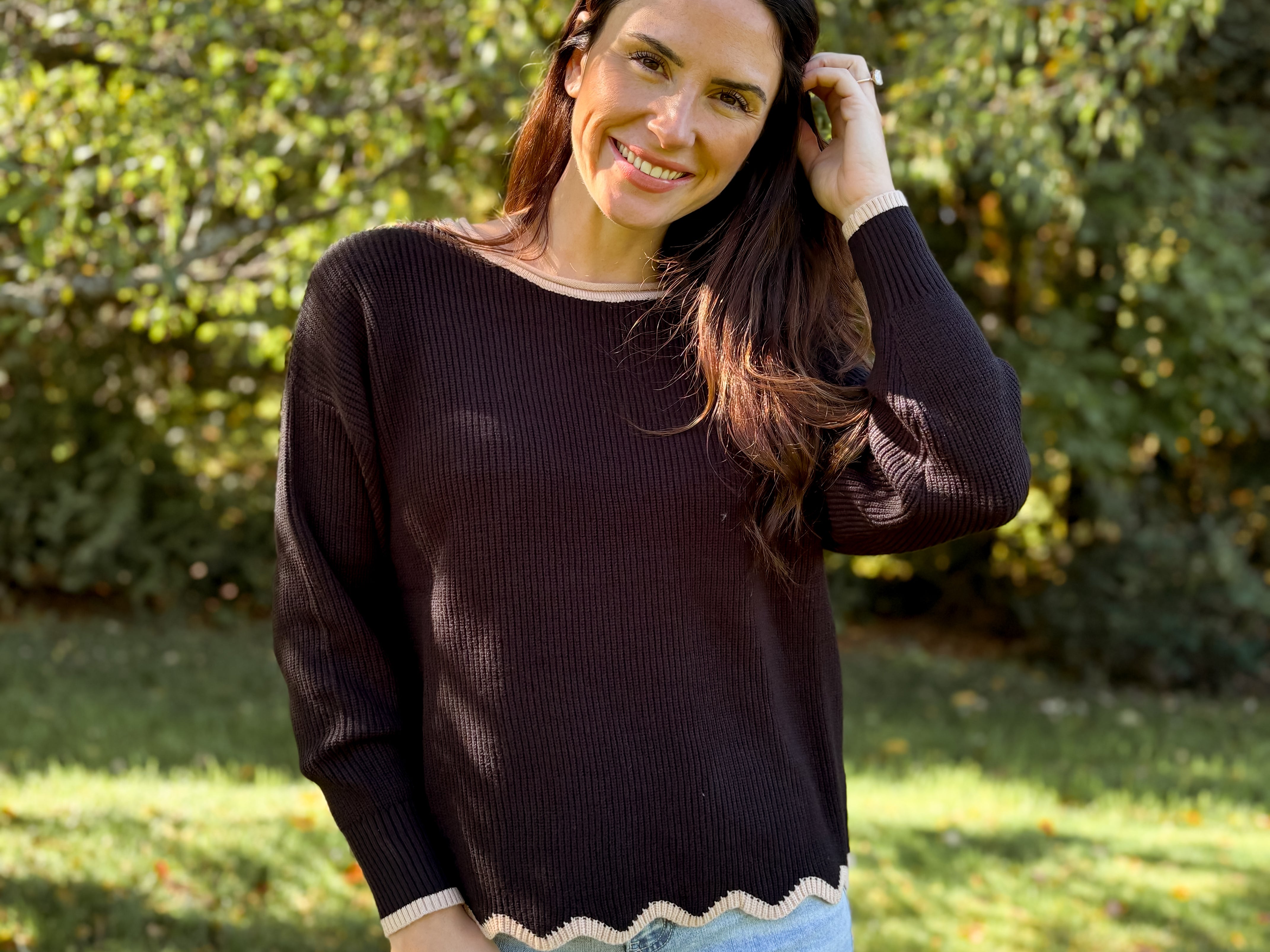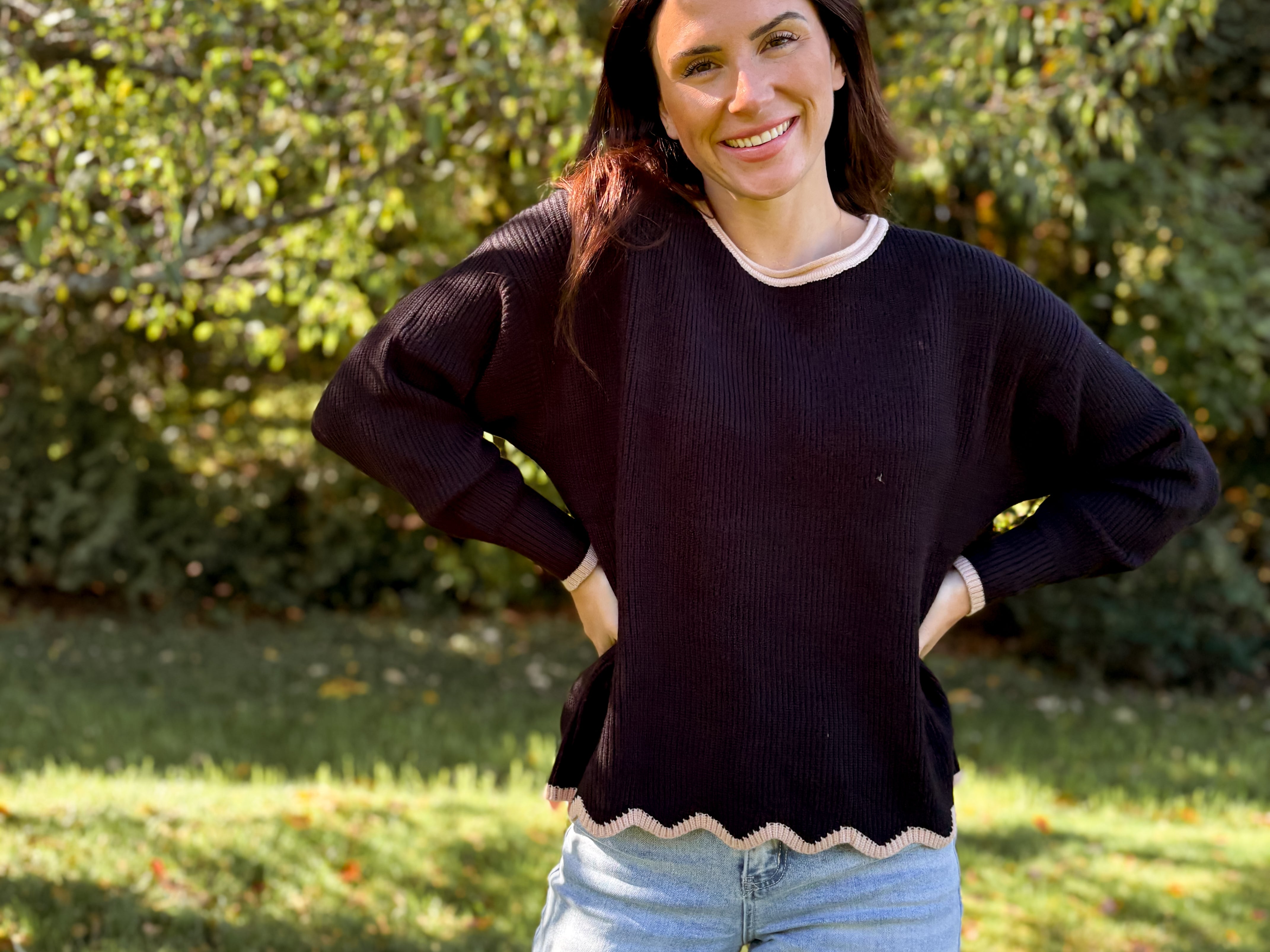 The Selena Contrast Scallop Trim Knit Pullover Sweater