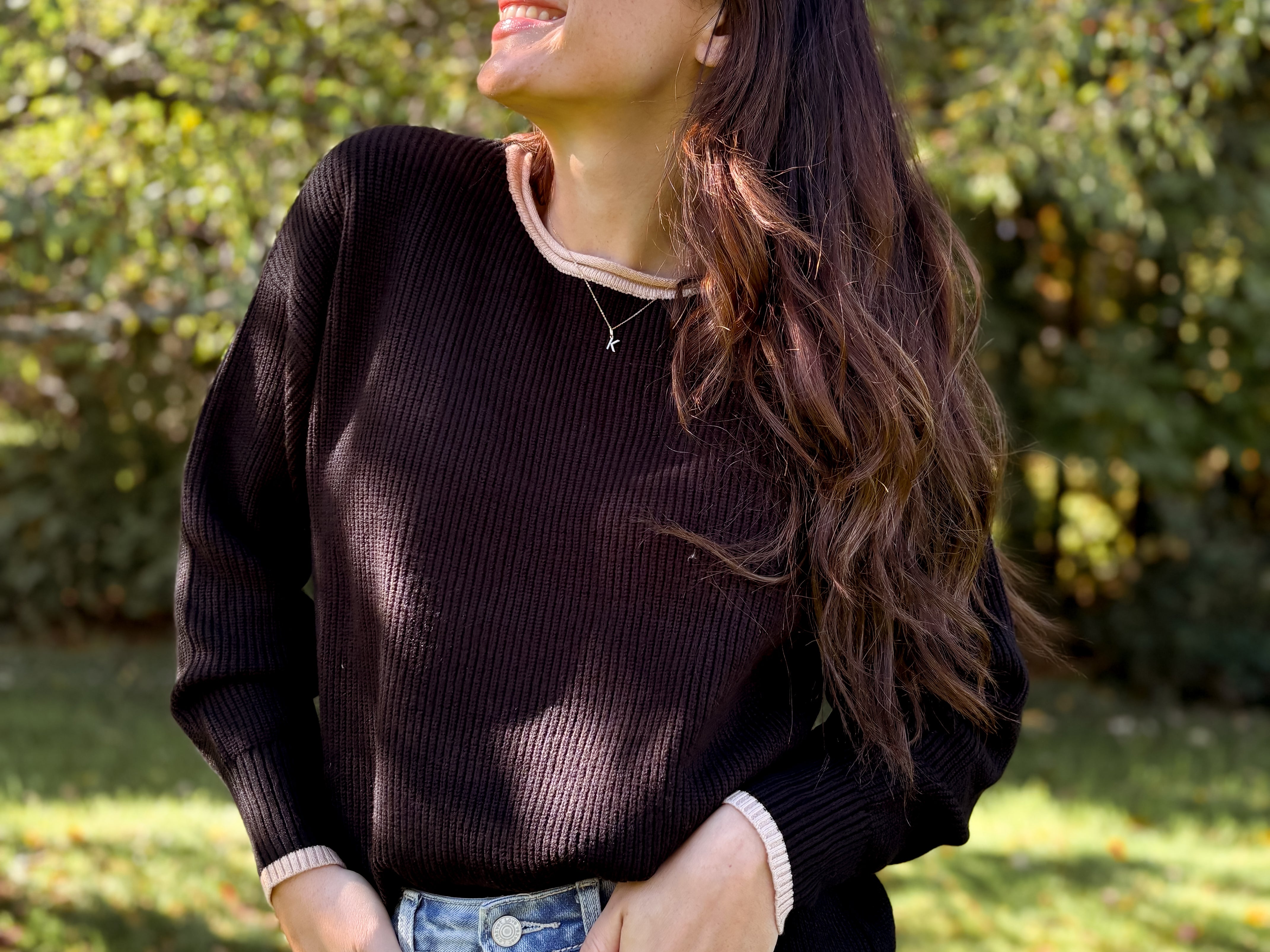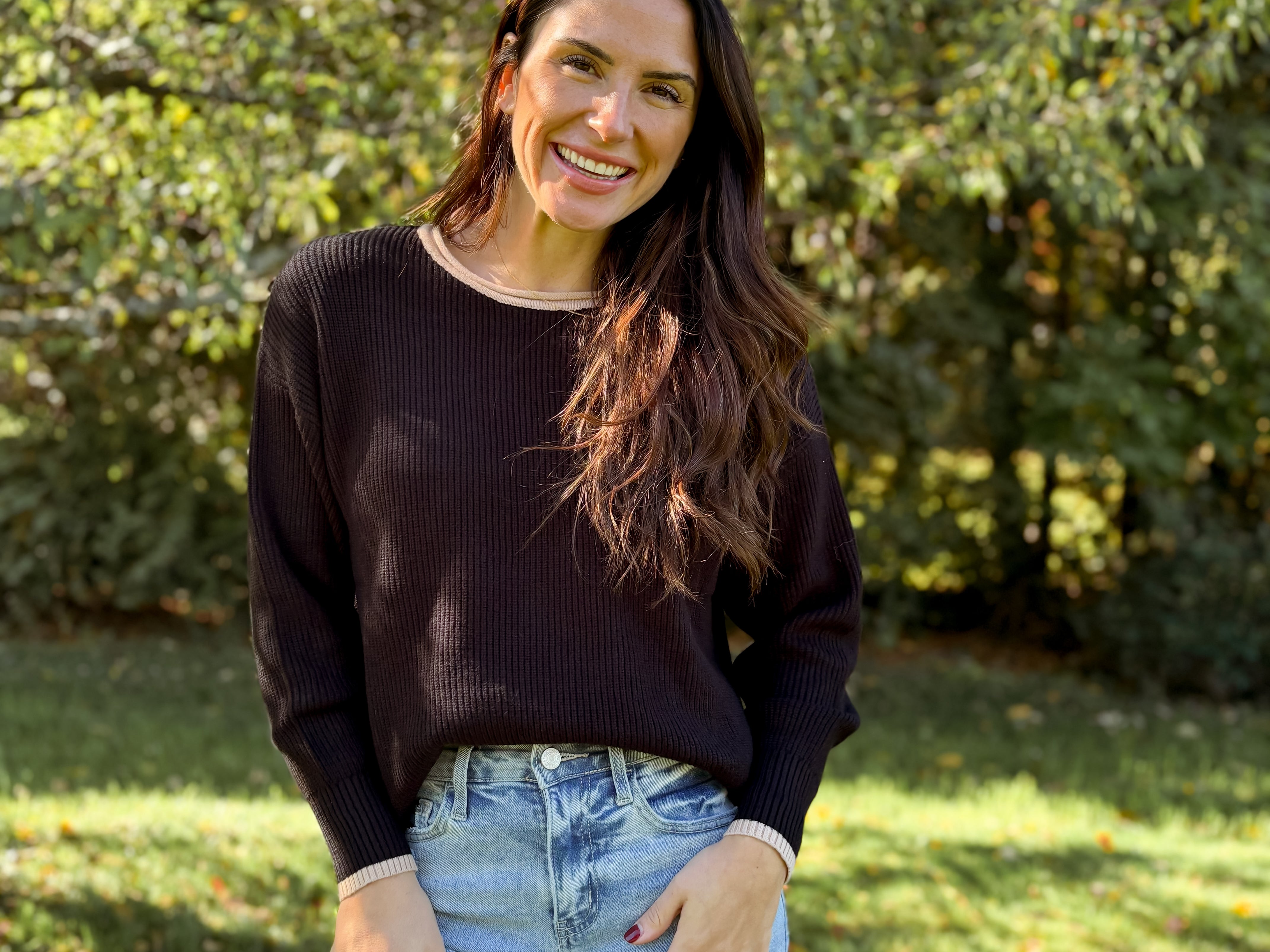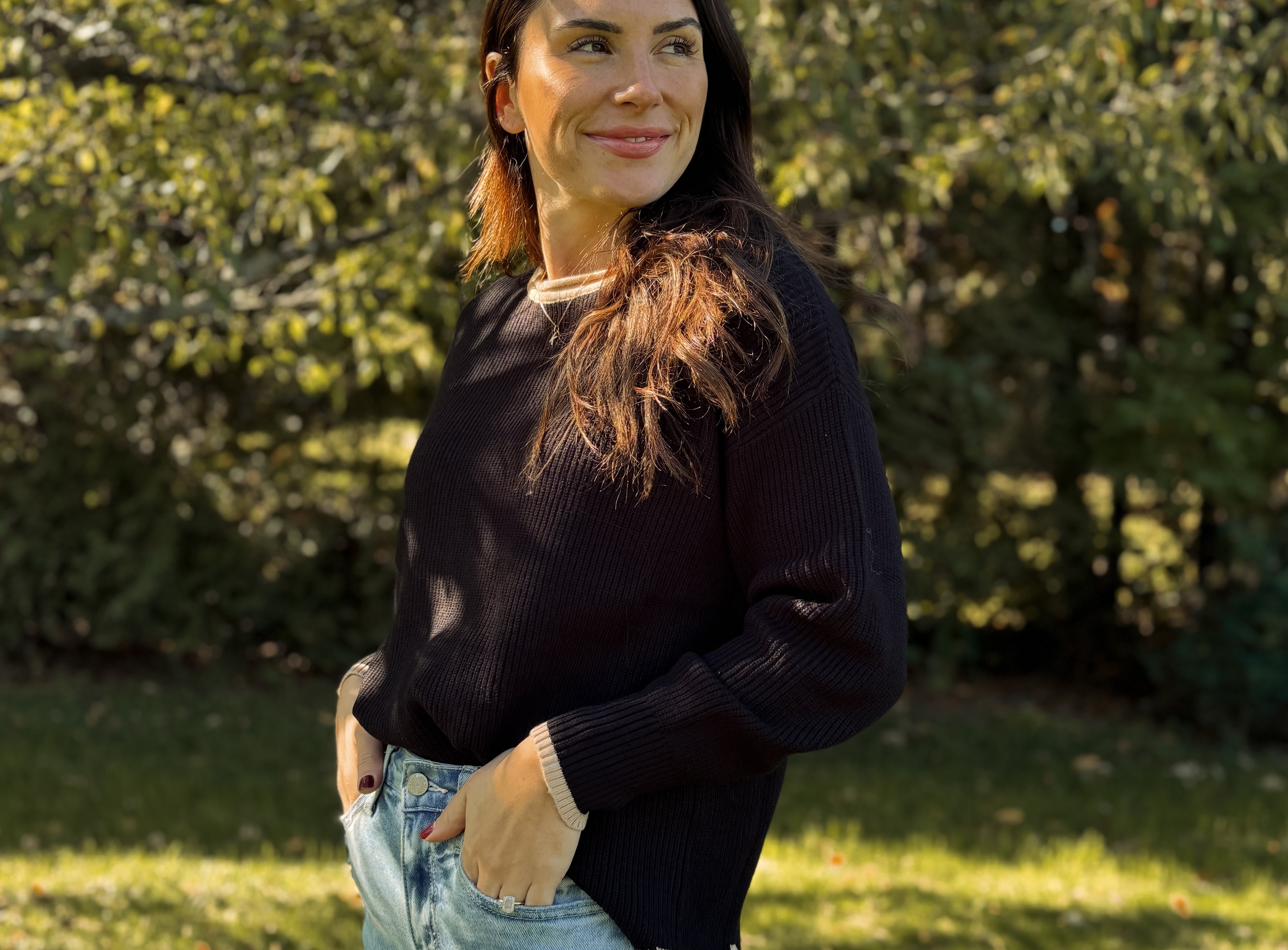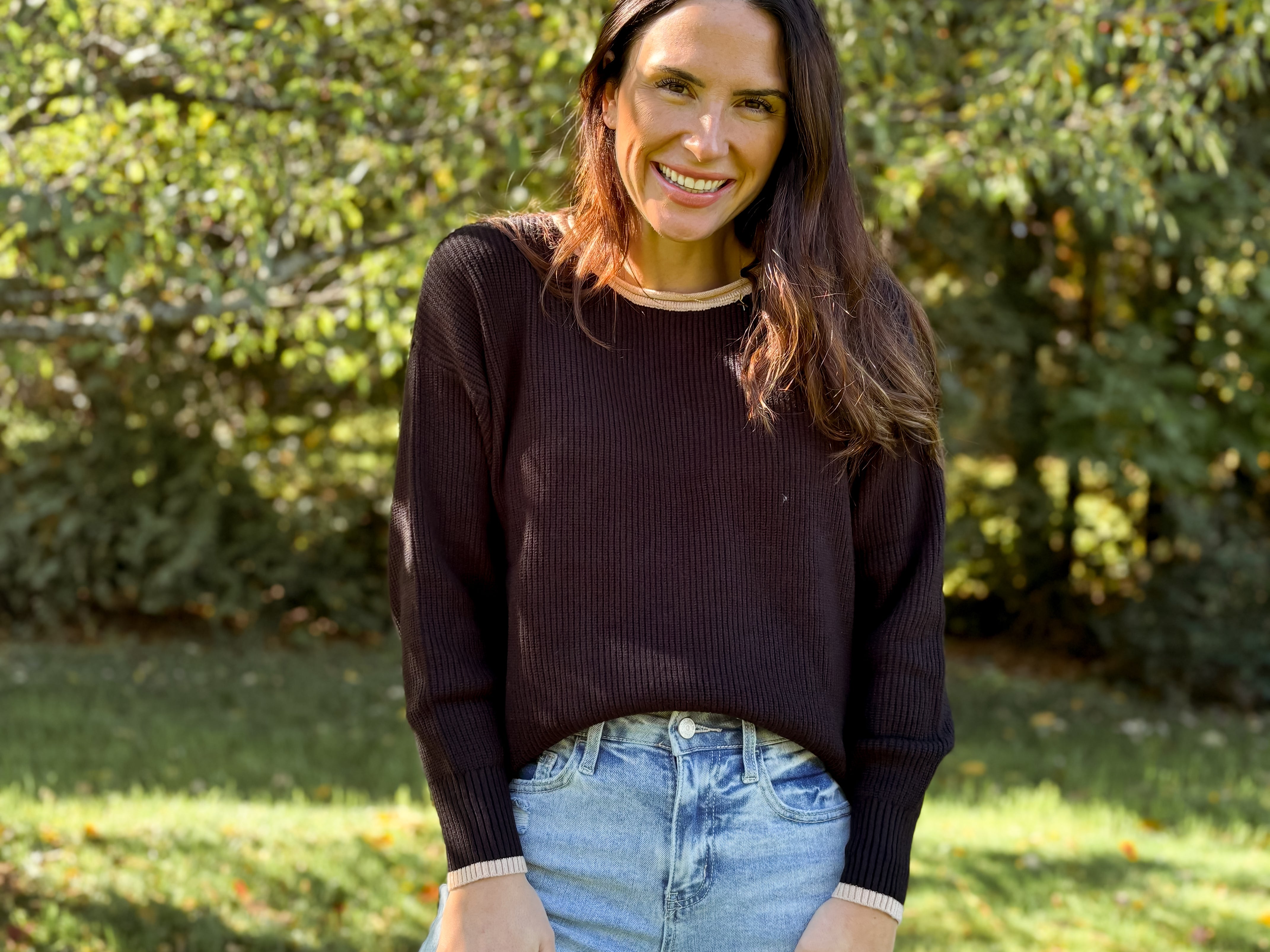 The Selena Contrast Scallop Trim Knit Pullover Sweater