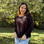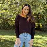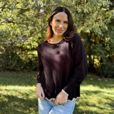 The Selena Contrast Scallop Trim Knit Pullover Sweater blends timeless elegance with cozy comfort. Featuring a flattering boat neckline and long drop shoulder sleeves, this solid knit pullover is finished with a delicate scallop hem contrast trim for a subtle touch of style. Its unlined design ensures lightweight warmth perfect for layering or wearing on its own. Elevate your wardrobe with this versatile sweater that pairs effortlessly with any outfit.