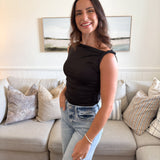 The Silas Asymmetrical Off the Shoulder Knit Top in Black