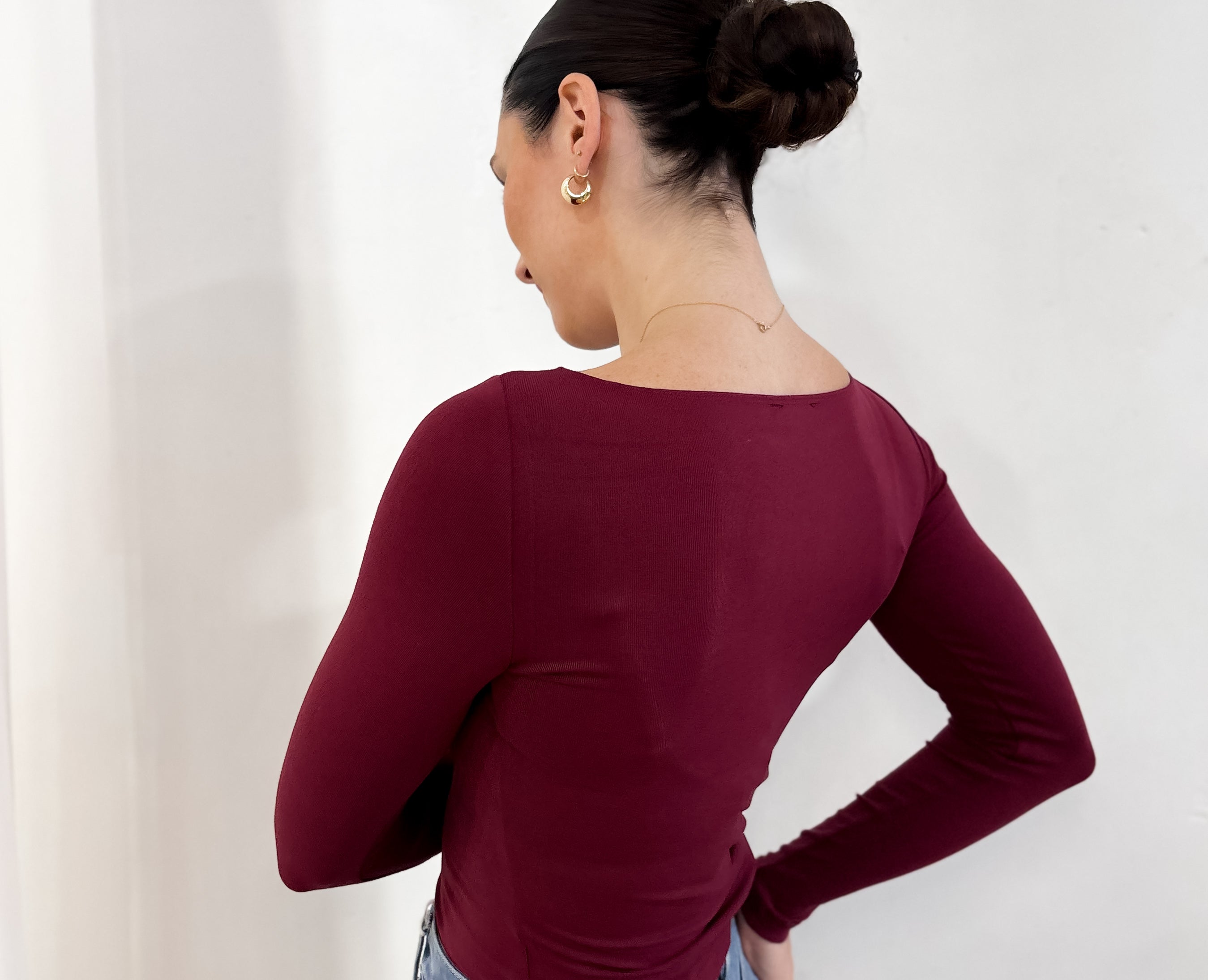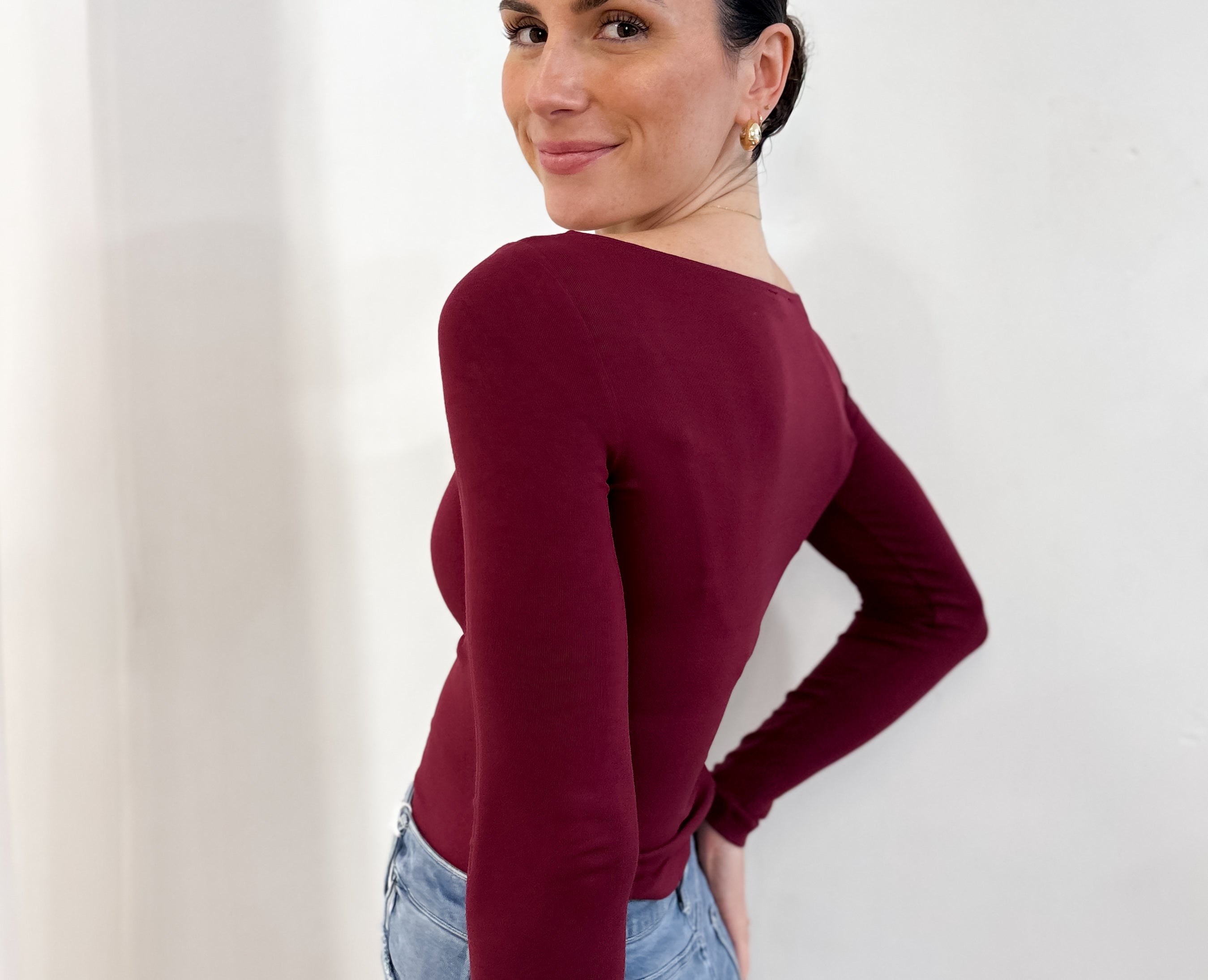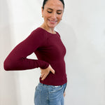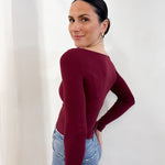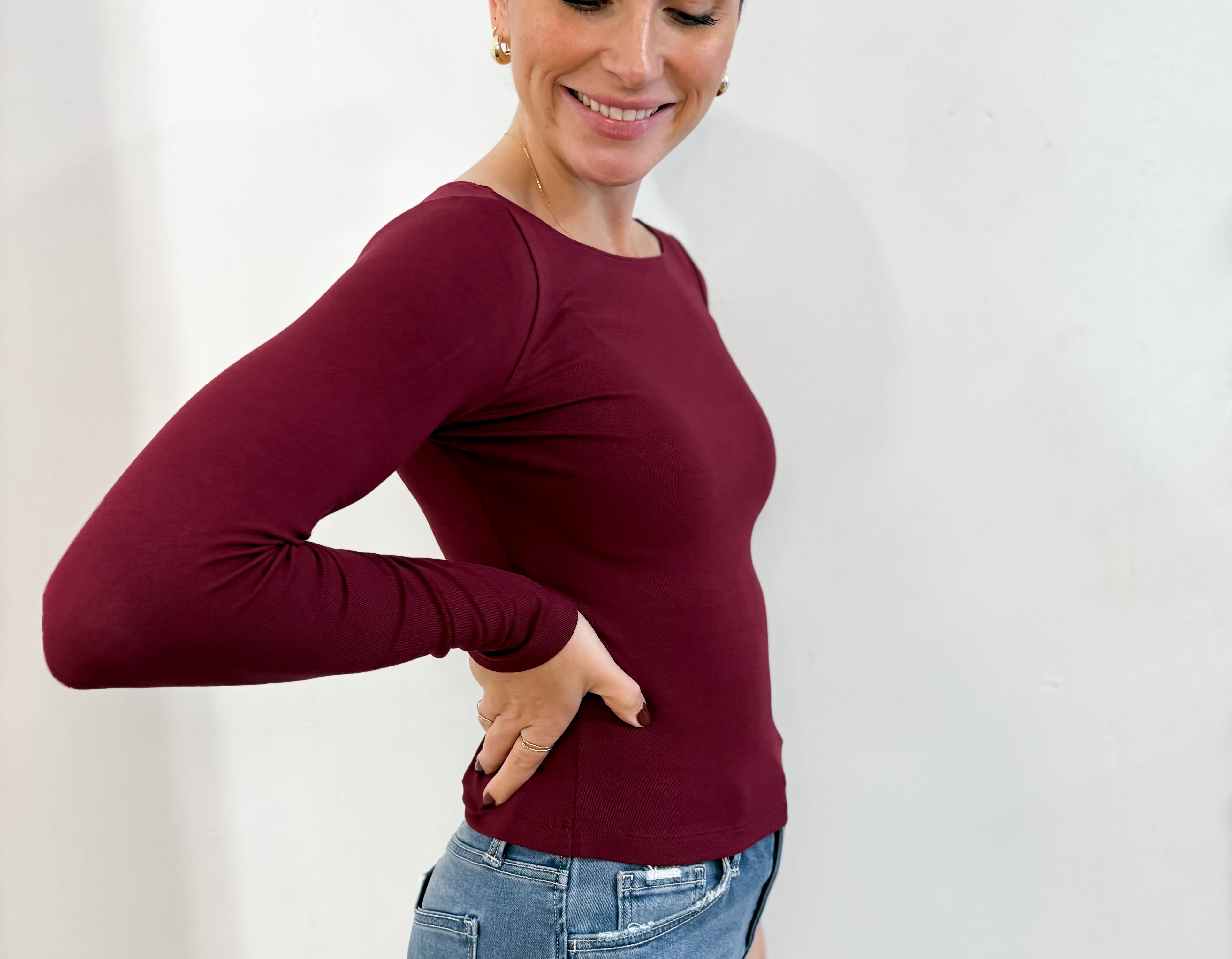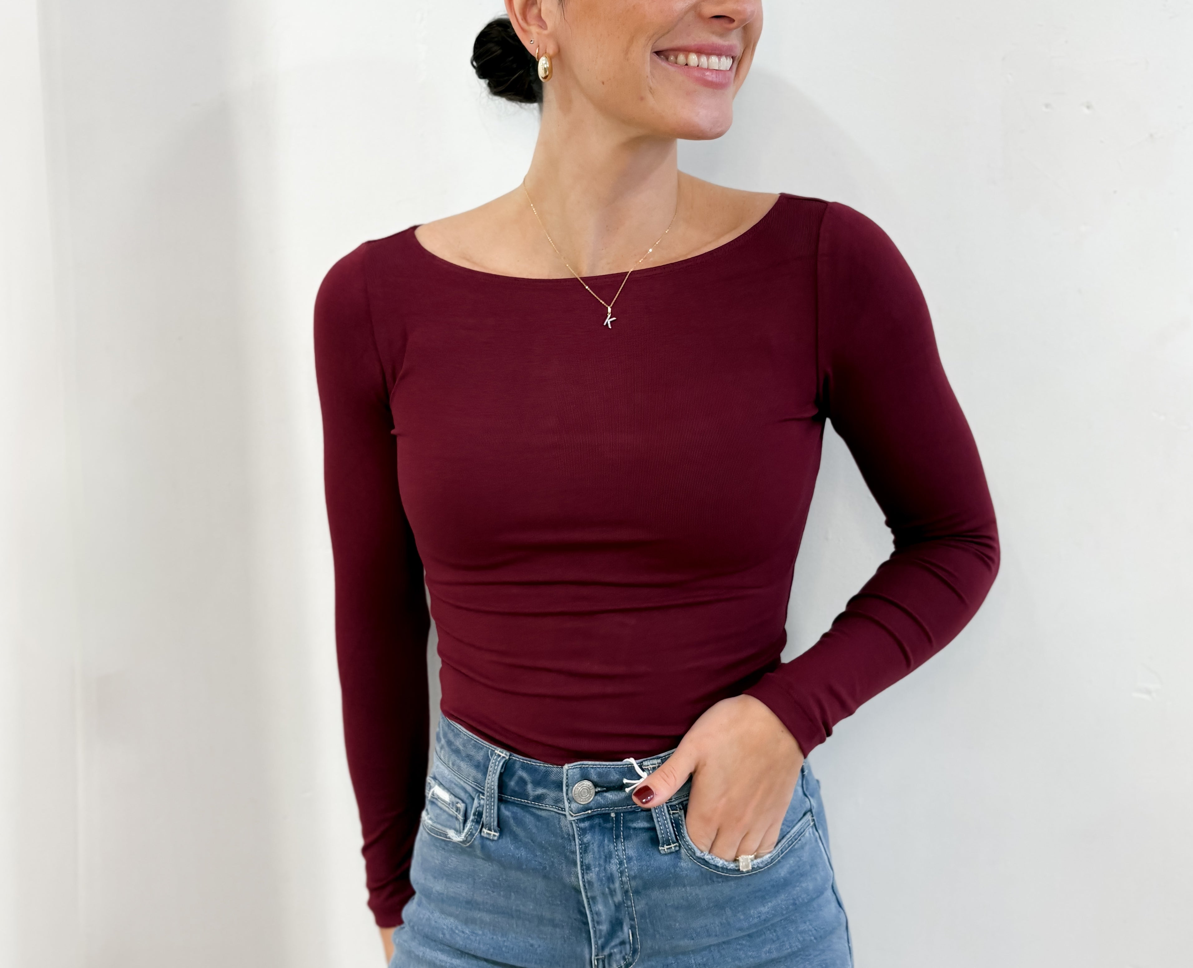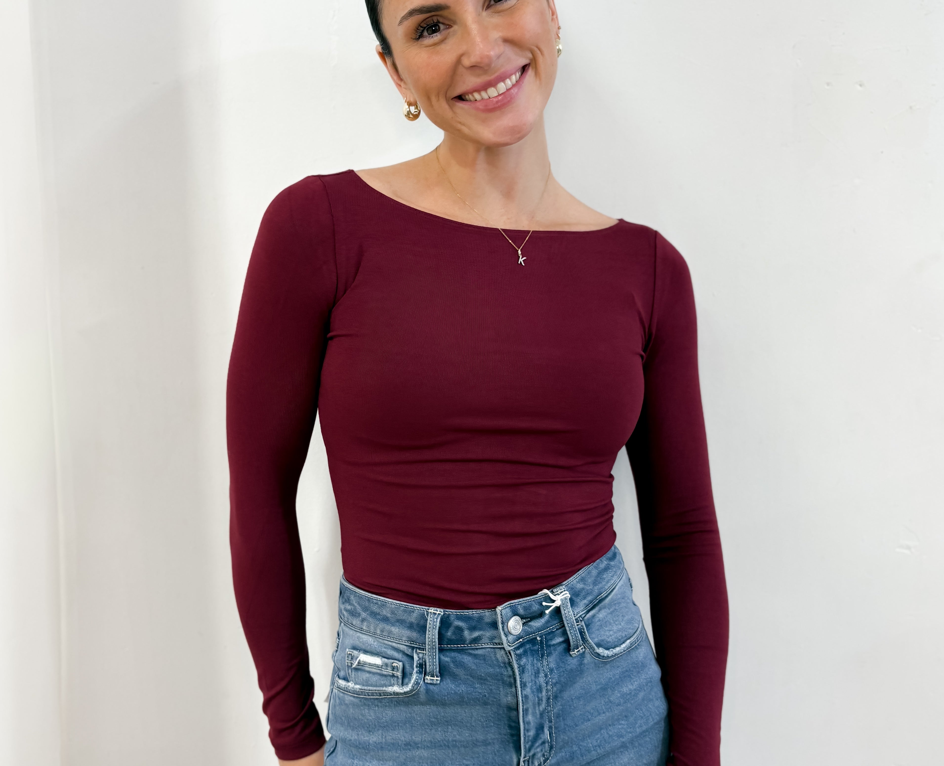 The Stacy Boat Neck Long Sleeve Solid Knit Top