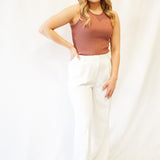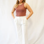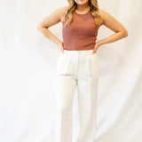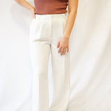 The Stevie Dress pants feature a flattering high waisted design and stylish pleating, making them a versatile and elegant addition to your wardrobe. With belt loops and a wide leg, these trousers are both comfortable and stylish, perfect for any occasion. Elevate your look and feel confident with these must-have dress pants!