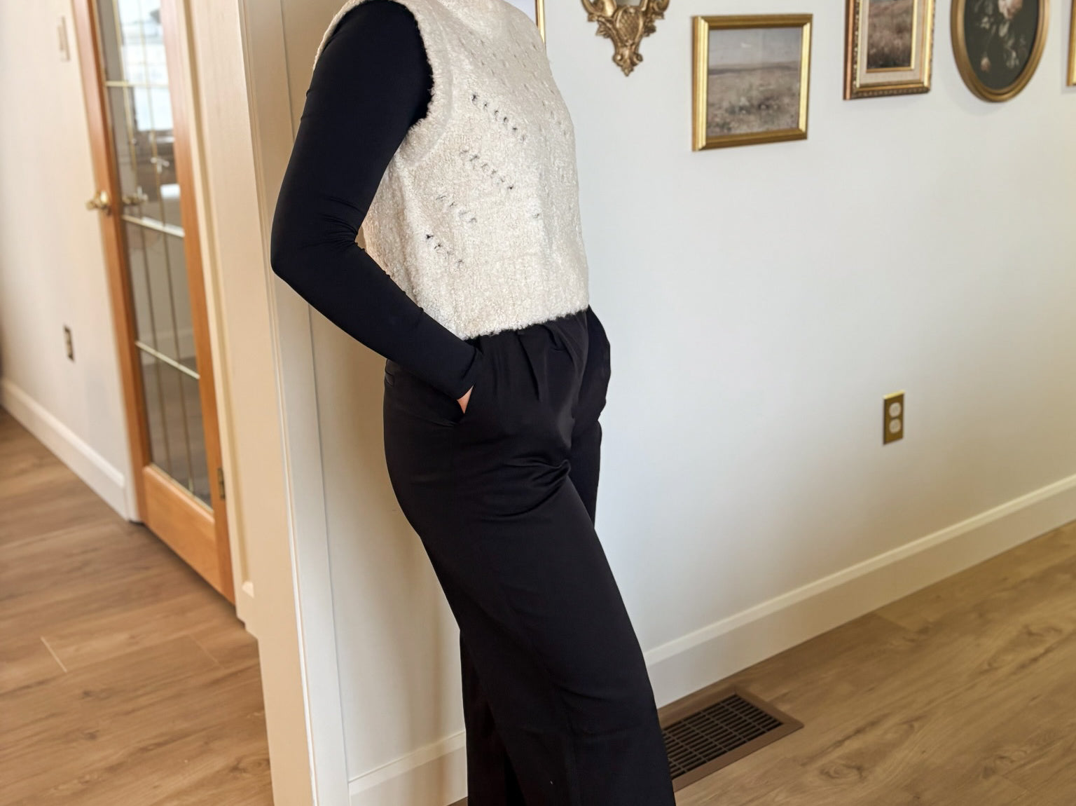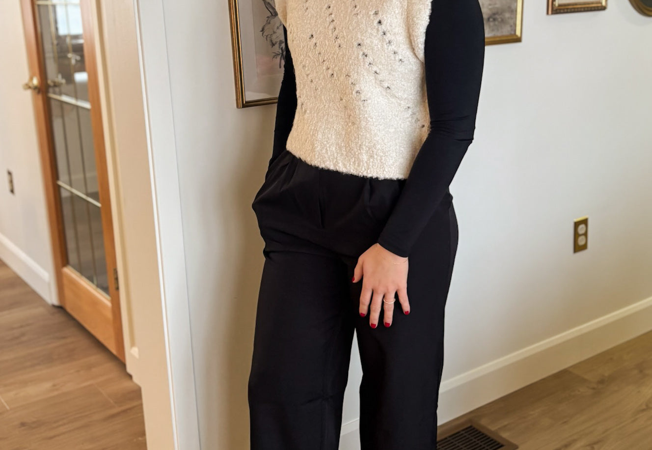 Elevate your wardrobe with The Vixen Pleated Wide Leg Trousers—a timeless essential that commands attention. Crafted with a flattering high waist and sophisticated pleating, these trousers offer a polished silhouette that works from office to evening. The wide leg and subtle flare create an effortlessly chic line, while practical details like functional pockets, belt loops, and a secure hook & eye closure ensure comfort meets style. Fully lined for a refined finish, these black trousers are the versatile piece every wardrobe deserves.