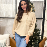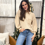 The Winifred Long Sleeve Crew Neck Casual Top combines effortless style with thoughtful design details. Crafted in a rich camel and khaki palette, this piece features a textured waffle print that adds visual interest and dimension. The drop shoulder silhouette creates a relaxed, contemporary fit, while exposed seams deliver an intentional, artisanal touch. Practical breast pocket styling meets functional side slits for easy movement. Perfect for layering or wearing solo, The Winifred transitions seamlessly from casual weekends to relaxed workdays.