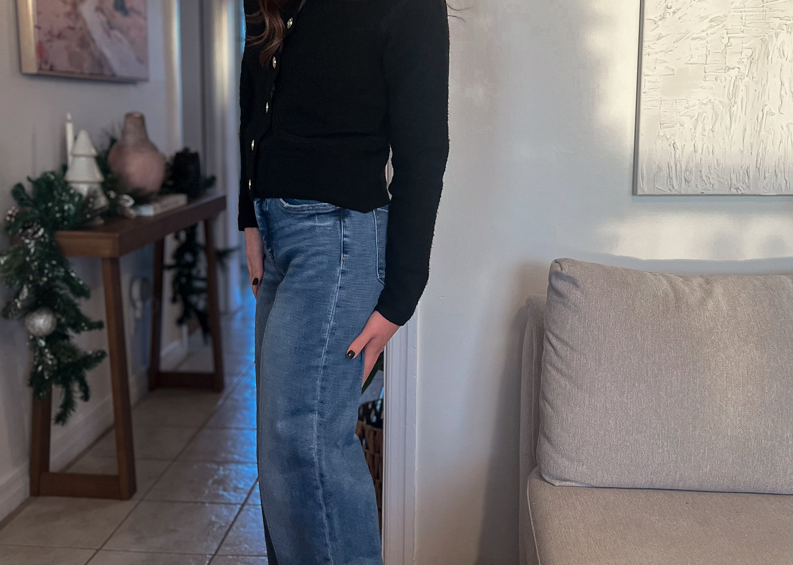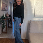 Introducing the Tummy Control Super High Rise Wide Leg Jeans! With their high rise waist and tummy control feature, these jeans will flatter and enhance your figure. The wide leg design and comfortable stretchy denim allow for easy movement and the slightly distressed detail adds a touch of edginess. Finished with a full length hem, these jeans are both stylish and functional. Say goodbye to uncomfortable and unflattering jeans and hello to your new favourite pair!